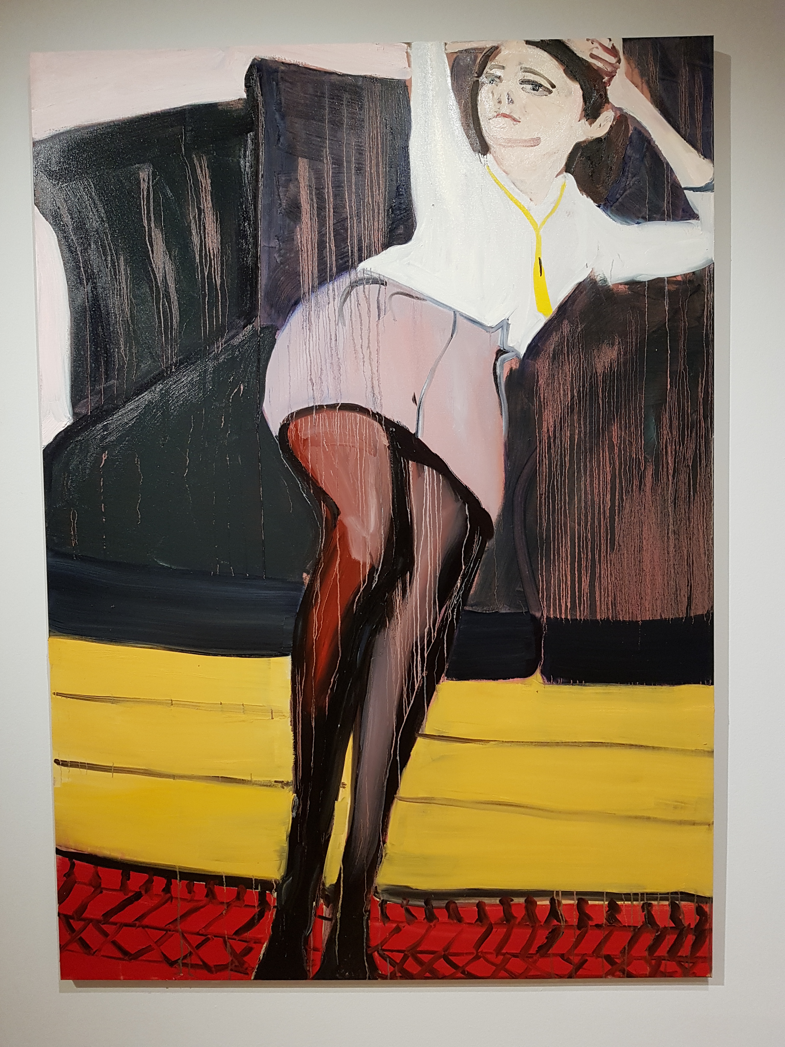 Chantal Joffe’s expressive paintings chart the growth of her daughter Esme from birth to adolescence, in relation to her own changing role as a mother. She has repeatedly drawn inspiration from her daughter Esme, who was born in 2004. For the first time Joffe`s lively and tender representations of childhood are being shown here together alongside a new portrait created in response to this exhibition. Here Esme dominates the canvas as she reclines back on the sofa in her school uniform, child, adolescent and young woman. Large areas of colour placed on the canvas with huge rapid brushstrokes helping to add vitality and personality.