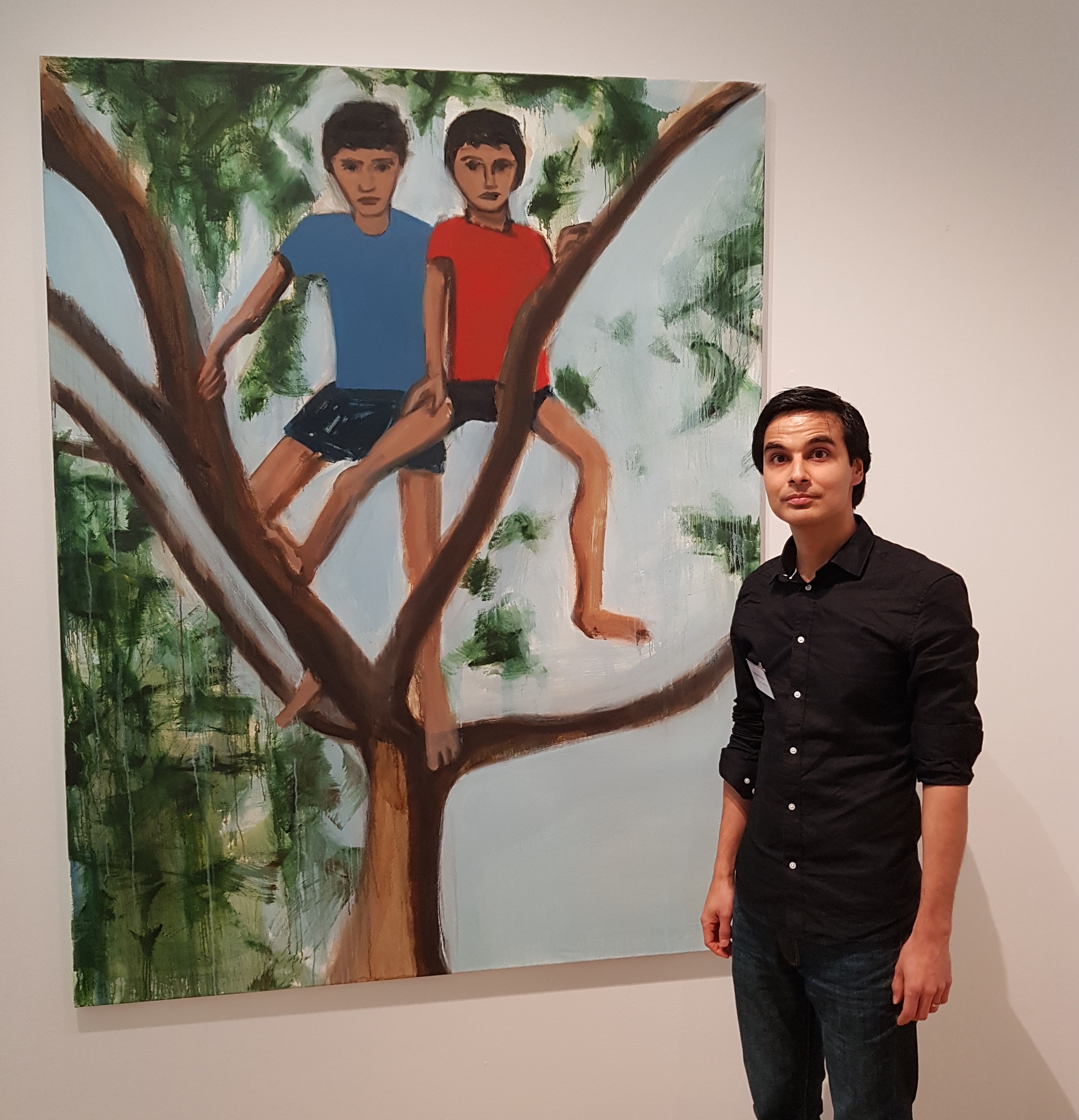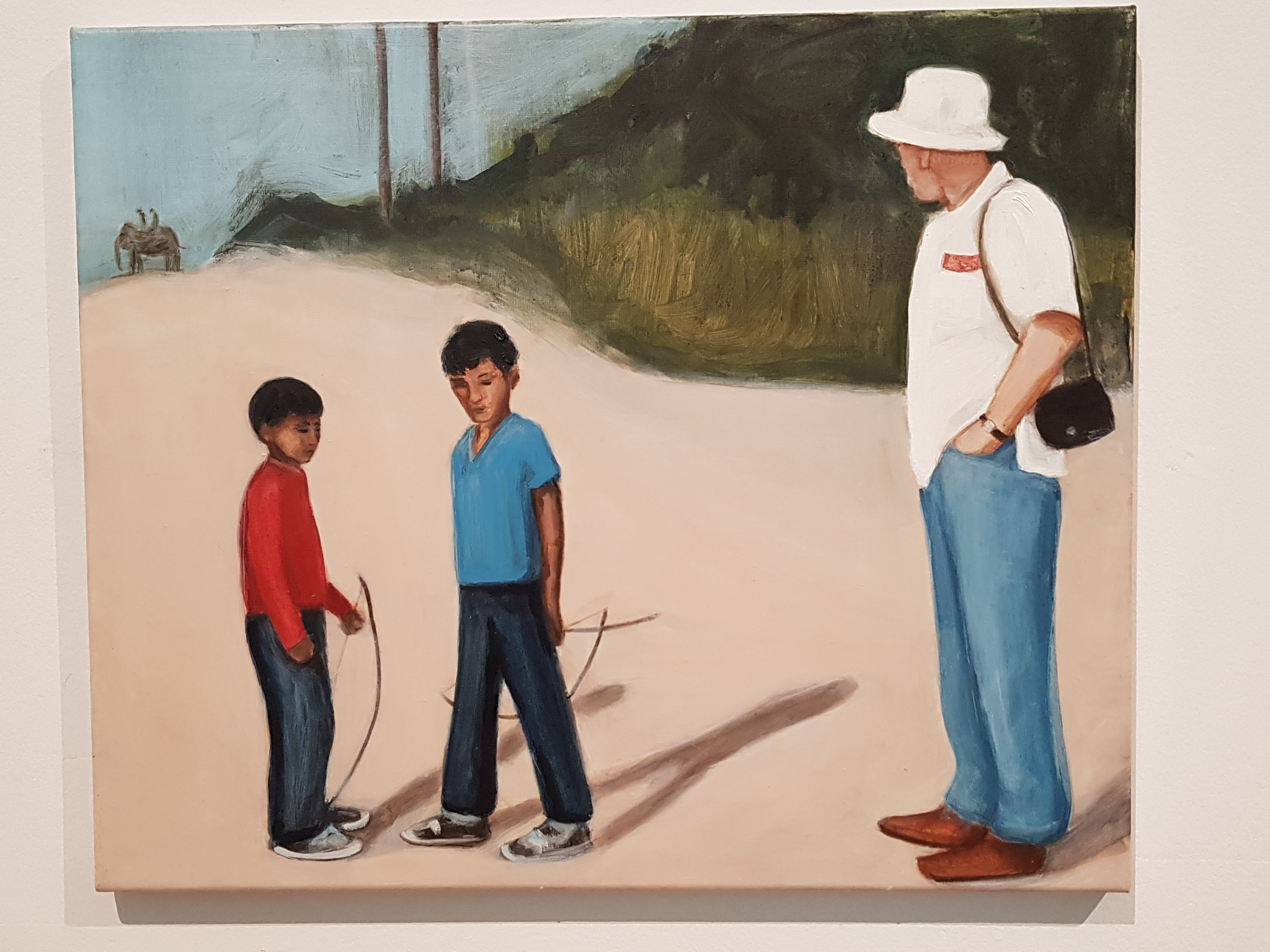 Luminously colourful, each of the paintings tell a story, a different story to each viewer. In “ Safari” are Matthew and his older brother Richard being told off by the man with his hands in his pockets?