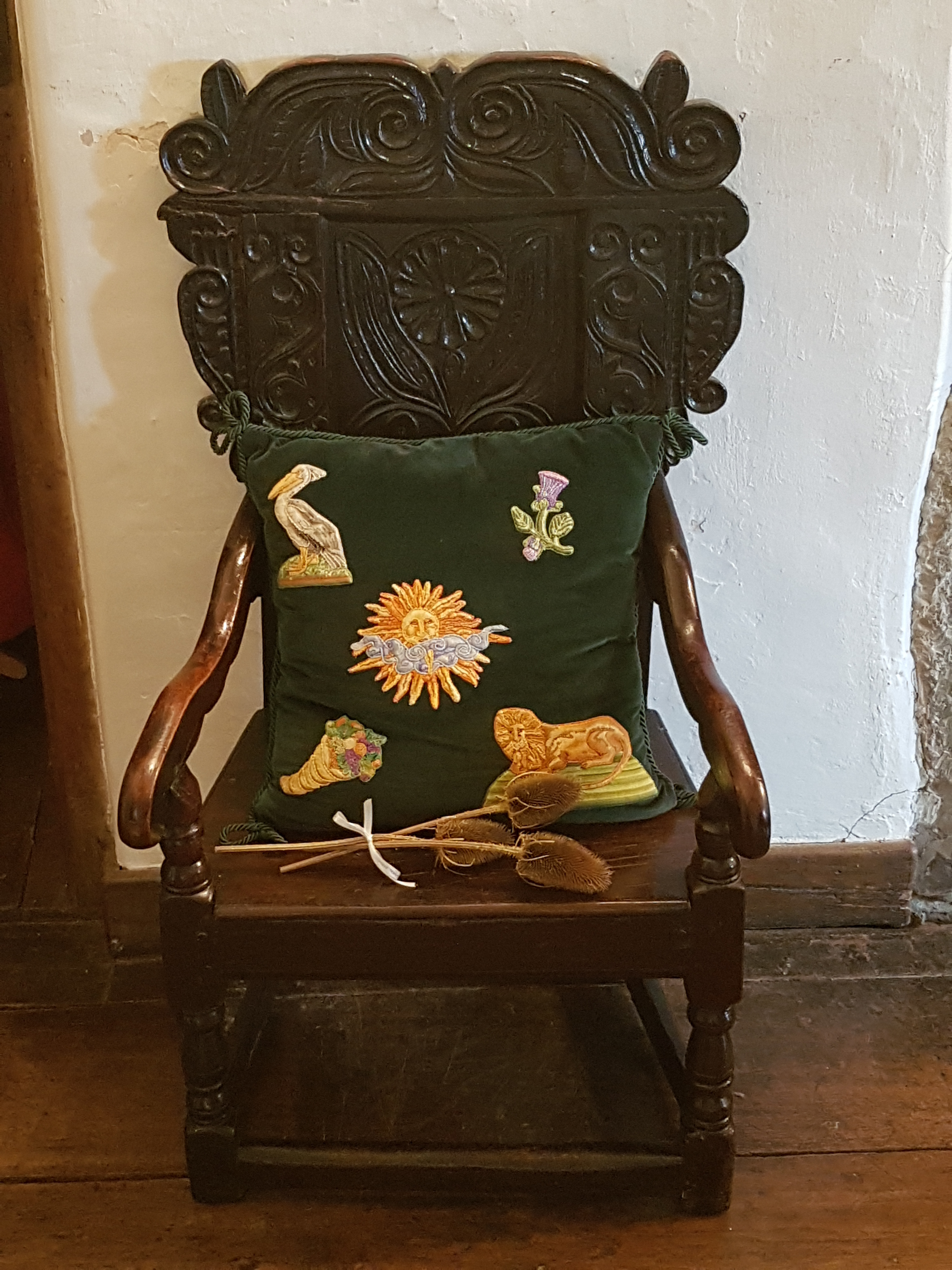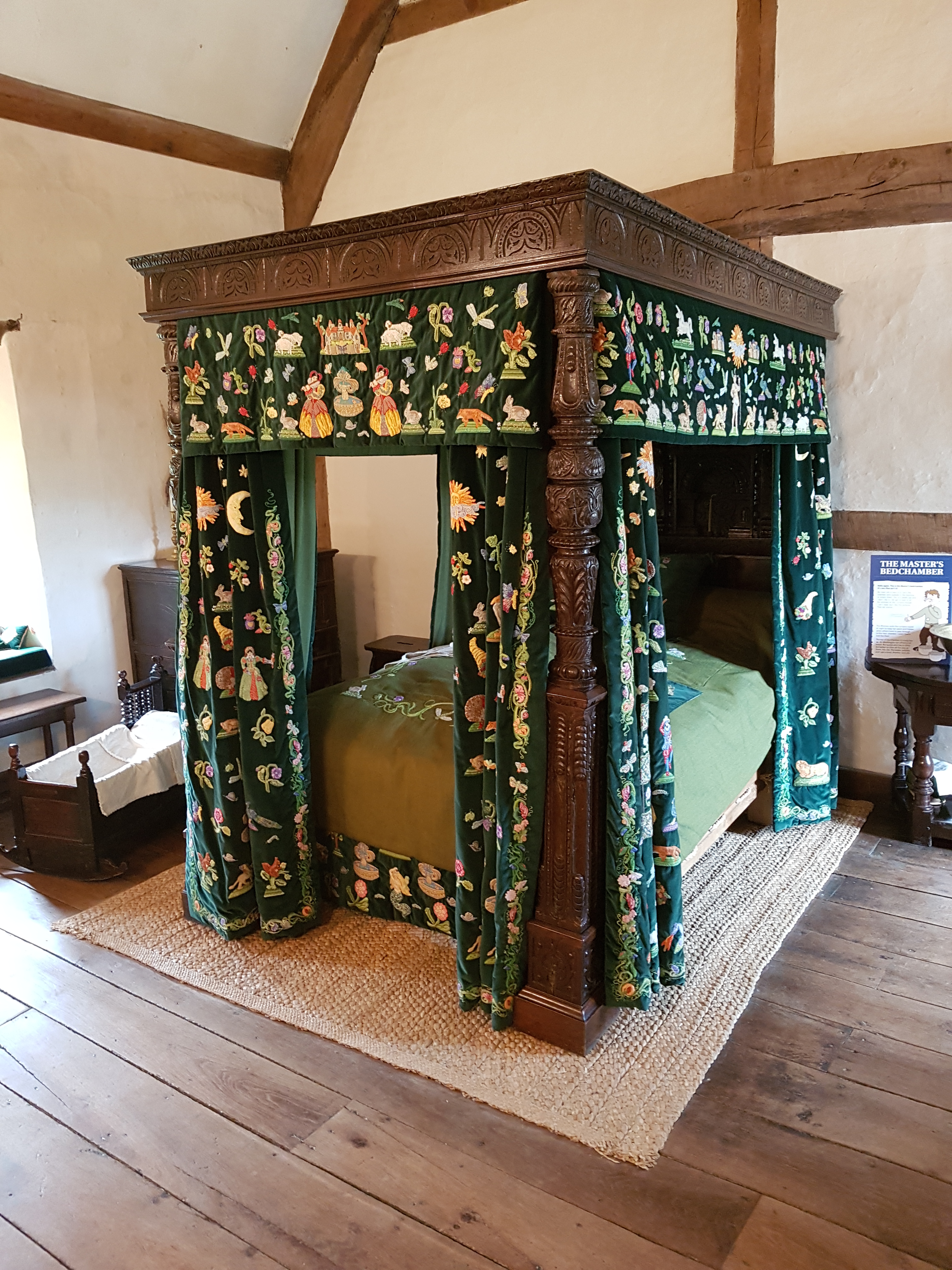 These contain examples of Tudor clothes, shoes, furniture and an 18th century baby-walker. The embroidered decorative hanging from the four poster bed in the main bedroom depicting scenes from both English and American life is excellent.