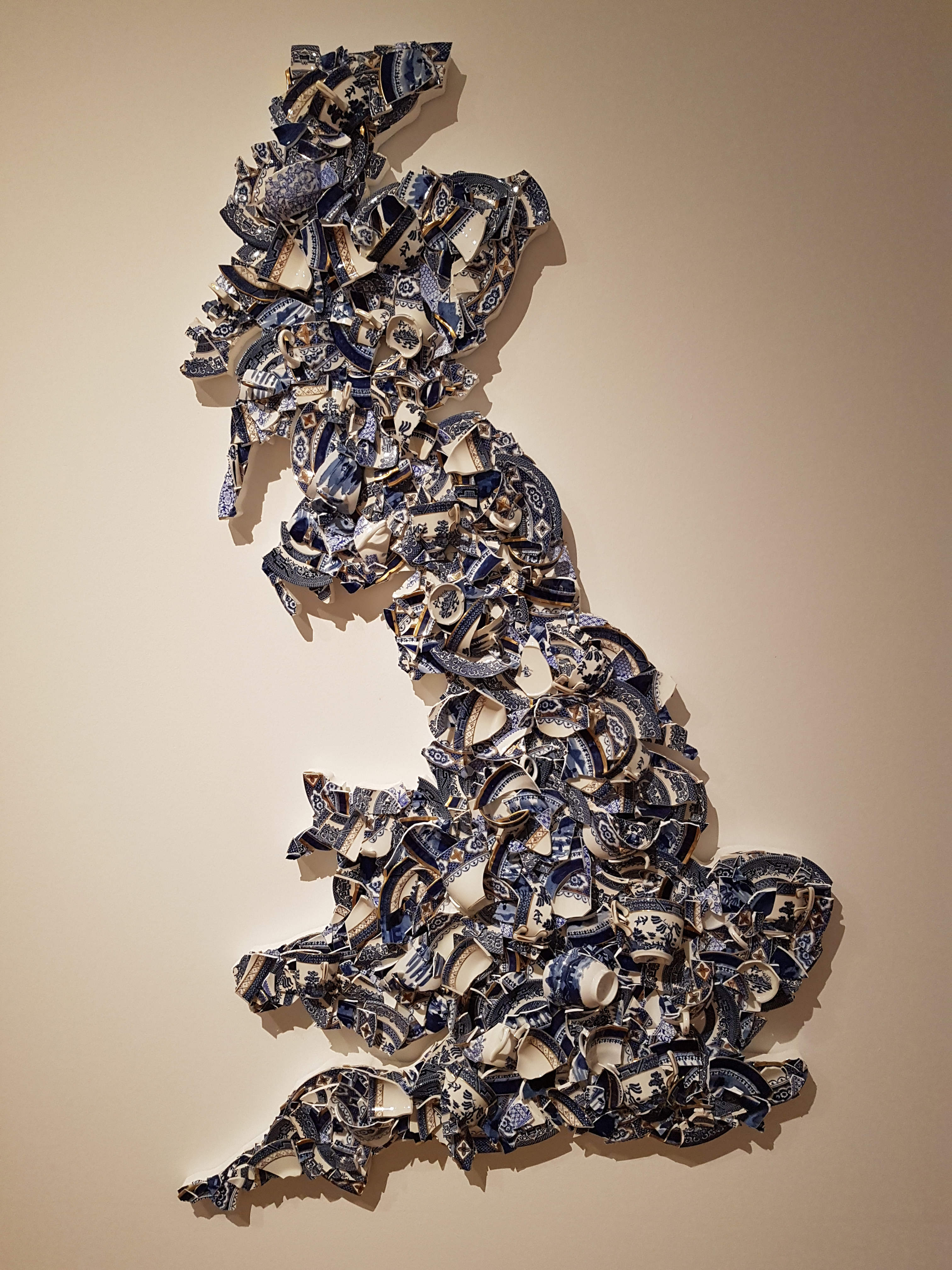Having once been a Geography teacher for many years, I simply loved Tea Time Britain by Bouke de Vries 2019, created from broken fragments of blue-and-white China cups & saucers produced in regions such as Staffordshire and Worcester.