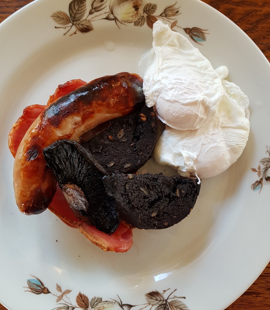 Breakfast: Bacon, Sausage, Black Pudding, Mushroom & Poached Eggs