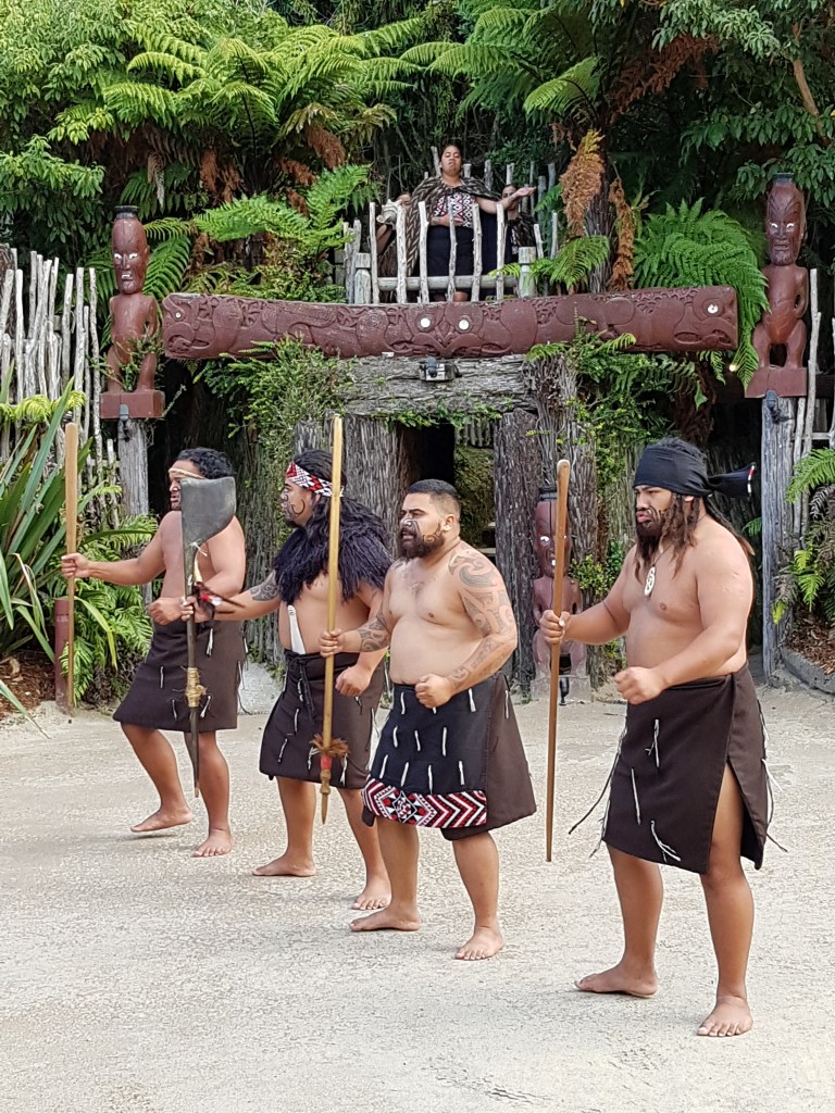 The demonstrations and explanations about the Maori way of life were delivered with genuine heart and soul and a lot of humour! The Haka is most familiar to many when performed by the New Zealand All Blacks Rugby Union teams. The haka is a ceremonial dance or challenge. It was performed by a group of male Maori when we first arrived at the village to ensure we came in peace and the men were invited to take part in a haka after brief instruction, although haka has long been performed by both men and women.