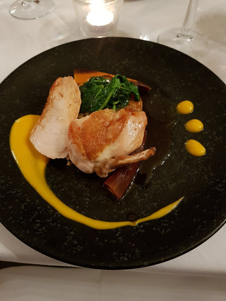 Both the Stuart Restaurant & Great Hall are impressive rooms in which to enjoy first-class dining. All around us were original 16th century oak panelling, large stone period fireplaces, historic oil paintings and grand chandeliers. It was a simply beautiful space in which to sit and watch the sun set over the lawns outside.