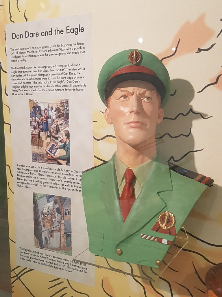 There was also a small section of the museum devoted to Southport raised Frank Hampson, the man who drew & created the comic strip figure Dan Dare. When living in Churchtown, Hampson worked with local vicar Marcus Morris and started one of the most popular British comics of all time, The Eagle. I found it fascinating!
