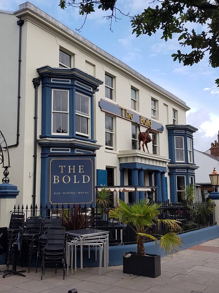 I was staying at The Bold Hotel in Southport, which is a Grade II listed hotel, originally built in 1832. It now offers accommodation and dining in elegant & stylish surroundings. The exterior of the Hotel in a late Georgian style looks very inviting. The red wooden sculpture above the main entrance of local steeplechaser Red Rum was very impressive. The Bold also has a large popular outside seating area too.