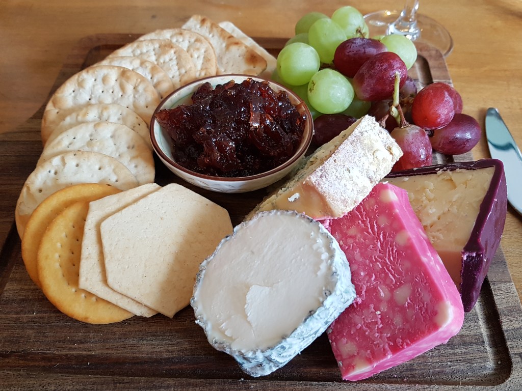 There was a selection of cheese biscuits & crackers, celery & grapes. Such a large cheese board we asked for & were given a `doggy box` to take home what cheese we couldn’t eat!