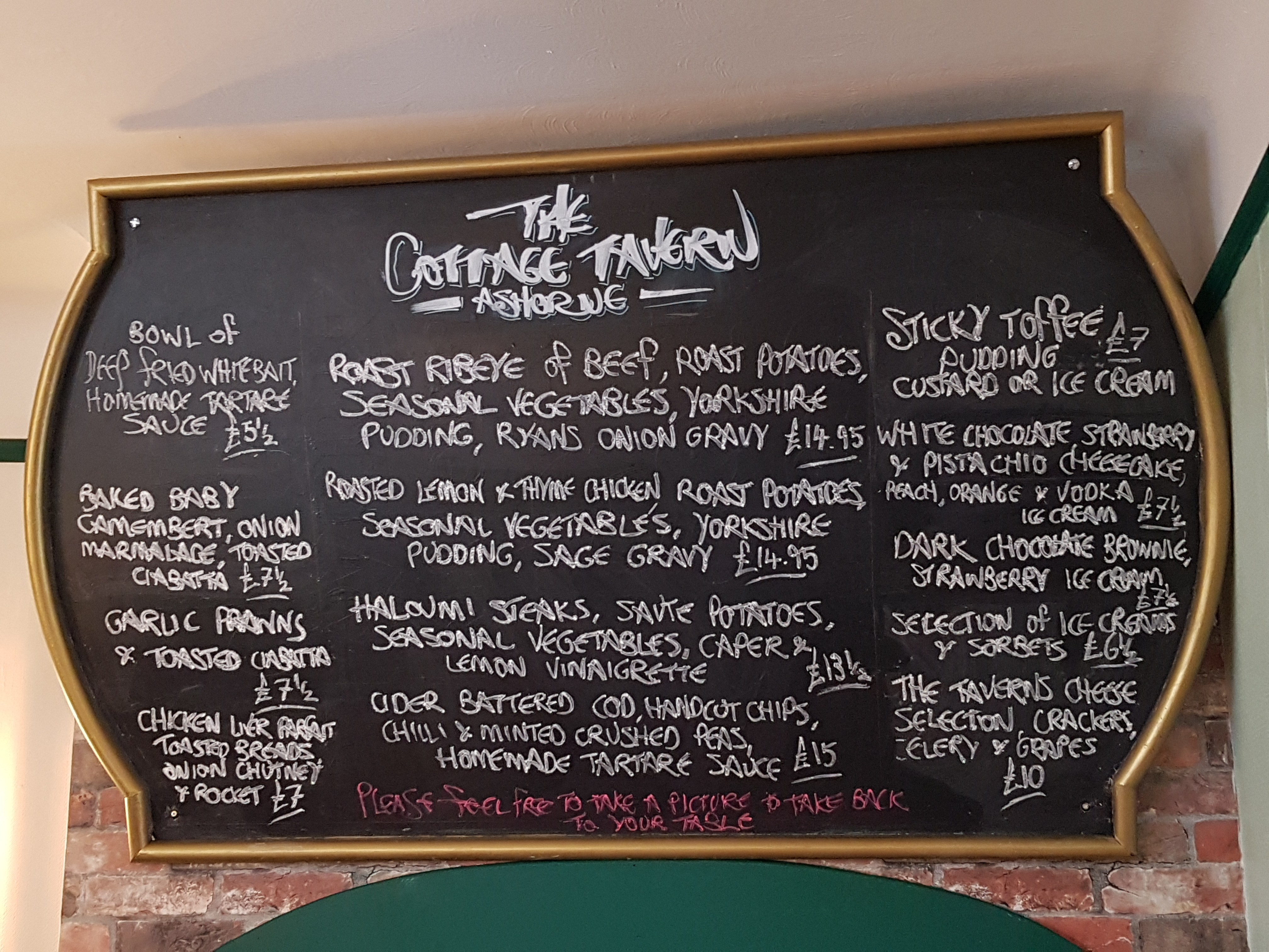 The menu has undergone a radical change and offers a daily changing blackboard menu using locally sourced produce, the 3-course Sunday lunch, and a regular Thursday steak night. Food at The Cottage Tavern is traditional but with many international influences.