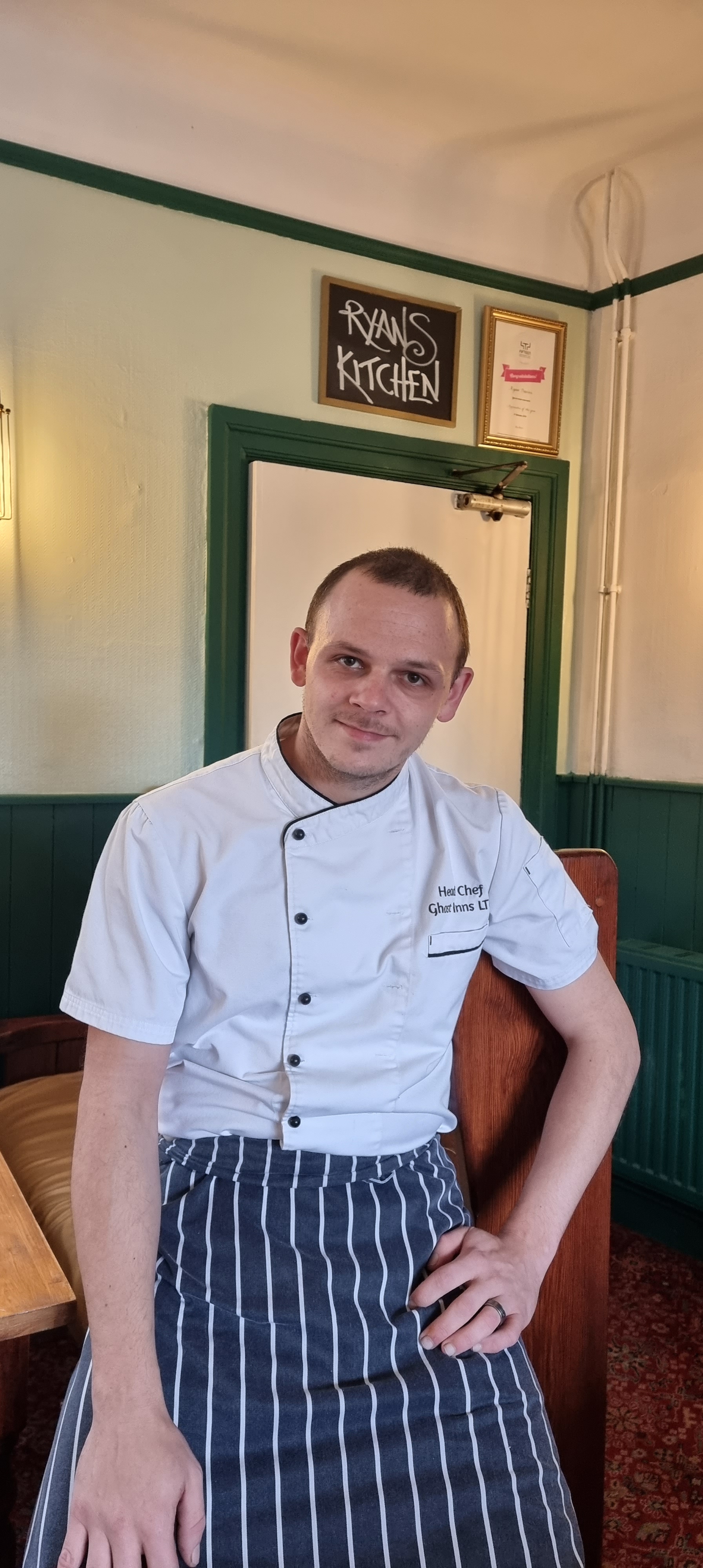 Ryan was trained at Jamie Oliver’s Fifteen Academy and was one year awarded ‘apprentice of the year.’ He described his food as ‘hearty, fresh, homemade seasonal produce made with a lot of passion.’ Ryan is obviously very enthusiastic about his cooking and is an ambitious young chef. He has previously worked under a Michelin starred chef at Bistro Bruno Loubet for three years as well as The Falcon Inn in Denham and a large chain restaurant, Miller and Carter in Stratford Upon Avon & London, but he is now very much enjoying the freedom to express himself in this authentic pub restaurant.