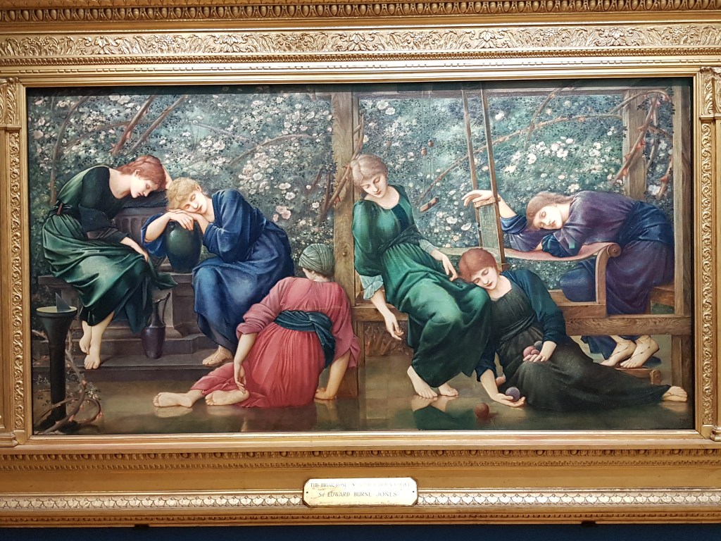 I visited the Bristol Museum & Art Gallery in Clifton. The museum is very large containing sectors devoted to natural history as well as local, national & international archaeology. The art gallery, which I found to be of most interest, includes works from all periods of Art history, including many by internationally famous artists, as well an extensive collection of modern paintings of Bristol. I particularly liked these Sleeping Beauties in one of the British Art galleries which included several paintings of the Pre-Raphaelite Brotherhood. The Garden Court (1892) by Edward Burne-Jones