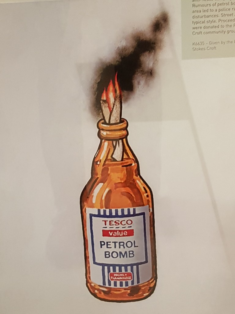 Much of this work was on display at the exciting & informative Vanguard Street Art exhibition at MShed, a renovated & restored for purpose 1950s’ dockside transit shed, which sets out to explore & celebrate Bristol’s critical role in the development of British & global Street Art. From anarchist origins in the ‘eighties and ‘nineties through to the explosion of the scene in the early ‘00s, the exhibition brings together one of the largest collections of original works and memorabilia ever seen in the UK.