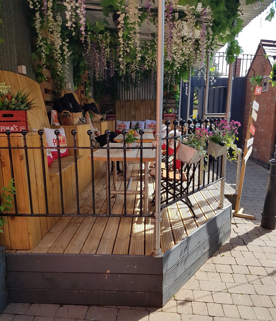 The main room was very bright with sunlight streaming in through the open doors which open out into a smart garden terrace at the back. This newly created covered garden area, with heating appliances, is an ideal space for sitting out in the sun enjoying a drink from the wide selection of branded ales and cocktails.