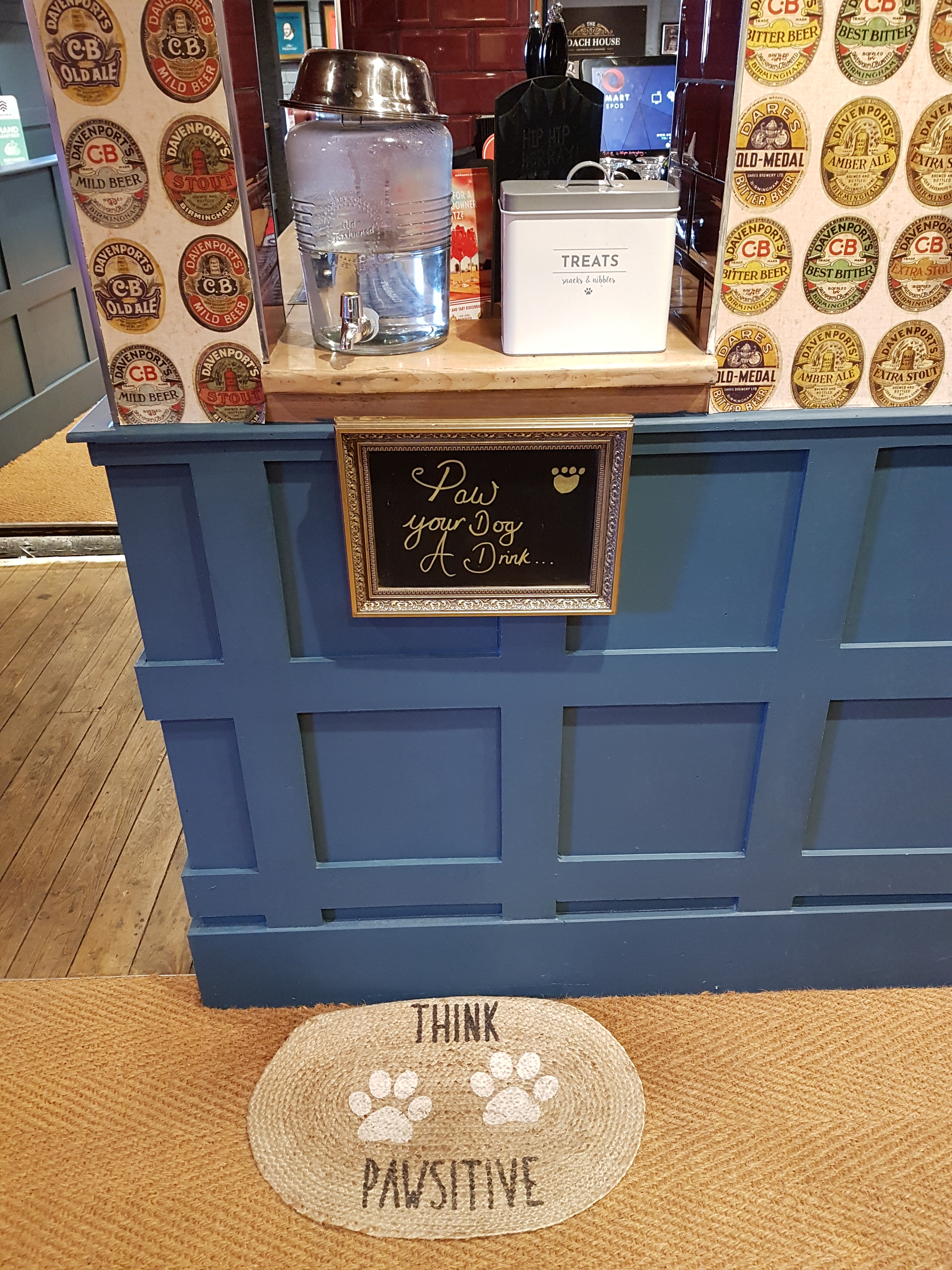 Dogs are very welcome at The Coach House, in fact they have their own section of the bar! Paw your dog a drink! A water chiller, silver dog bowls, treats, snacks, nibbles and a Think Pawsitive dog mat greets all of your canine friends.