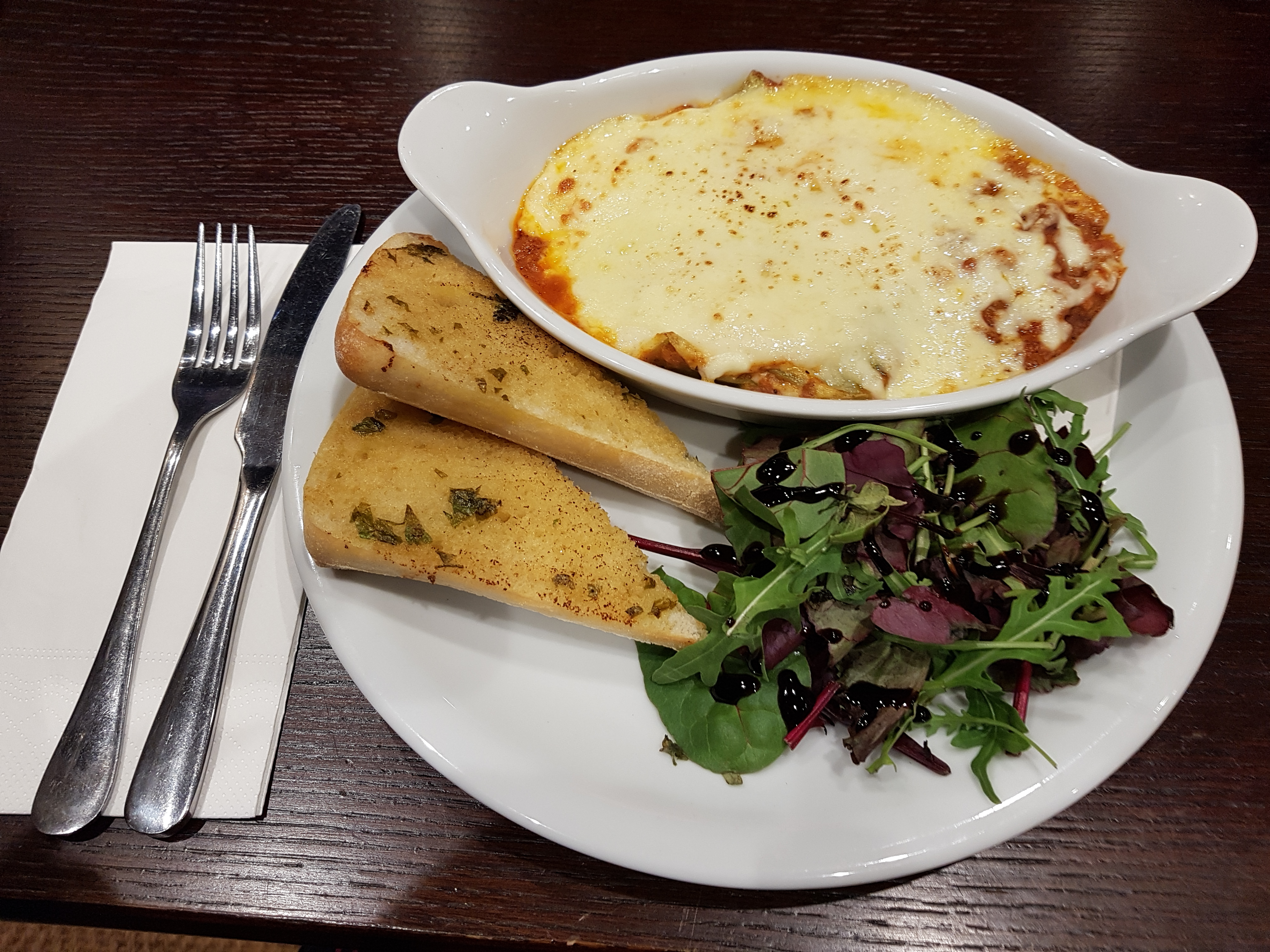 My wife chose the home made Rich Beef & Red Wine Lasagne. She said her meal was wonderful. She said it had obviously been made from good quality beef, which was piping hot and there was plenty of it! The salad was nicely dressed and the garlic bread very tasty. She gave her meal ten out of ten!