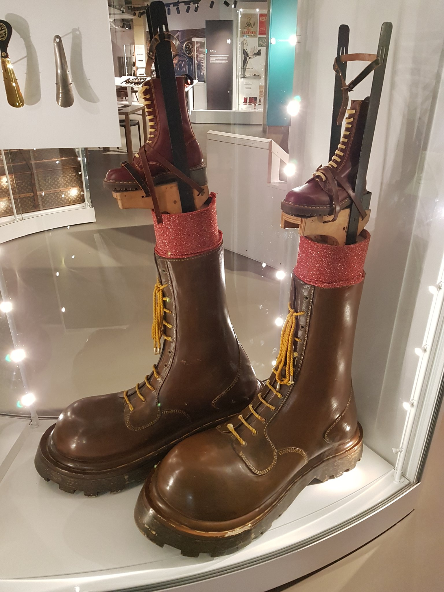 It is one of the largest collections of shoes and shoe heritage in the world with 15,000 pairs in the collection and can now proudly demonstrate and reflect that in this beautifully arranged space. The earliest shoes date as far back as 300BC, Queen Victoria’s wedding shoes, Elton John’s tommy boots from the film “Tommy” and the iconic Red Boots from the film “Kinky Boots”, which was set in Northampton, are some of the most famous & familiar foot wear on display. Lots of people from Northampton have contributed shoes to the exhibition, so it is very much the towns own shoe Museum!
