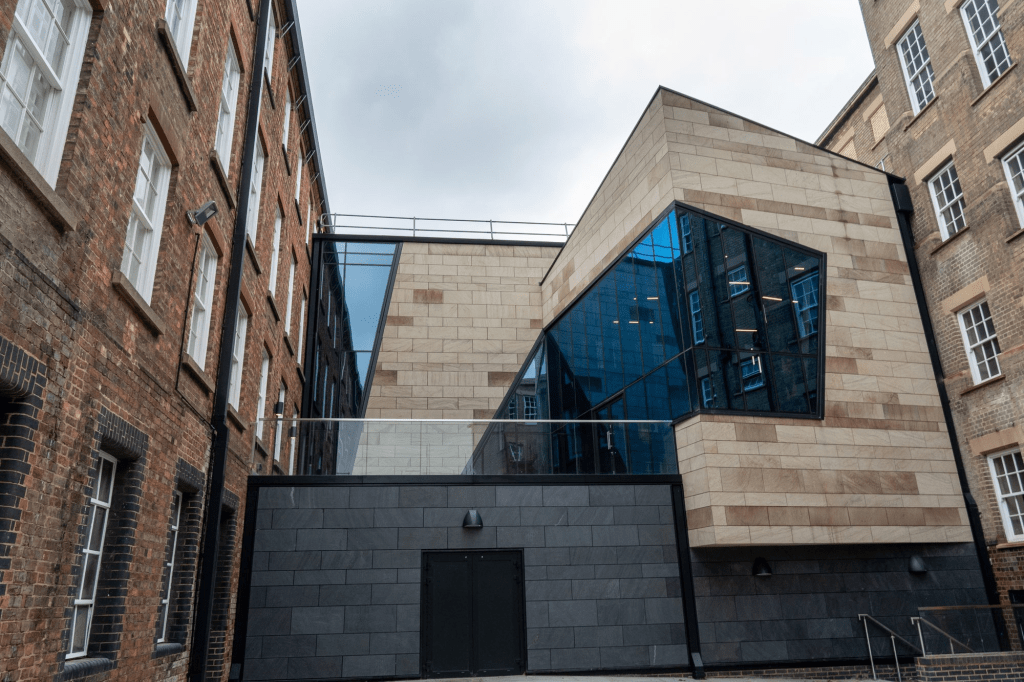 The Northampton Shoe and Art Gallery had been closed for over four years until its reopening in 2021 after a major £6.7 million redevelopment and refurbishment project. The Museum has more than doubled in size since work began in 2018. It is the “focal point” in the town’s Cultural Quarter, which includes the NN Contemporary Art Gallery, 78 Derngate, Royal and Derngate and the Vulcan Works.
