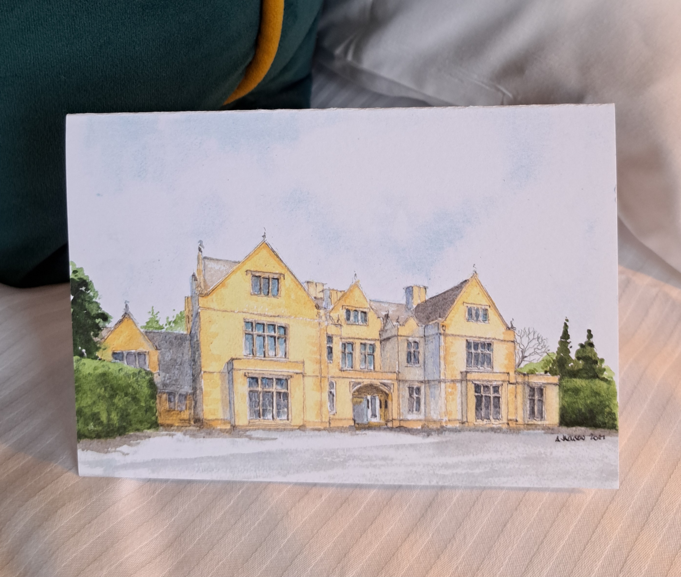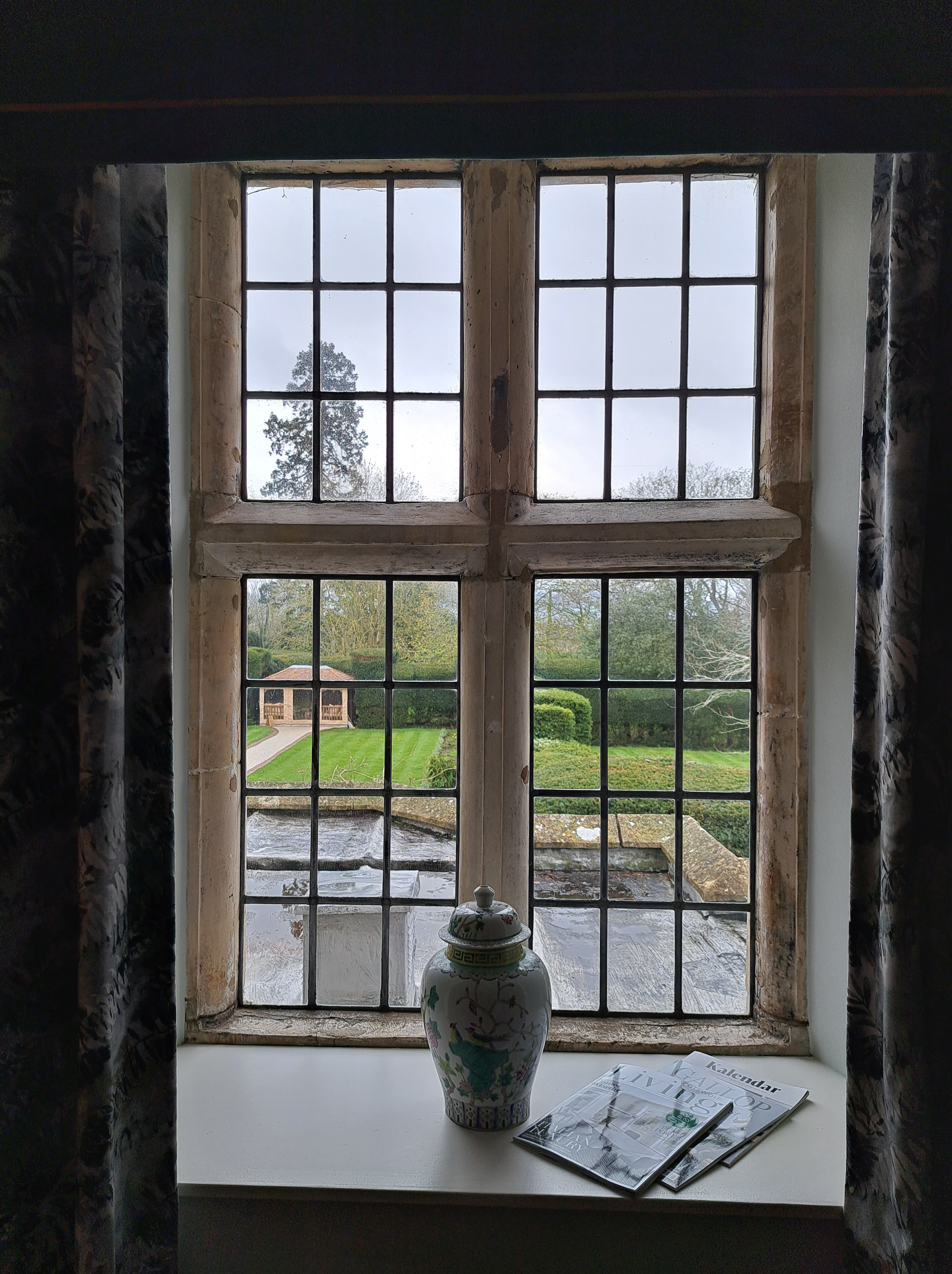 On my approach to the Hotel, I passed the entrance Lodge and drove down the old carriage driveway to the imposing façade of the house. Built around 1584 the west front has short wings either side of a gabled centrepiece and small tower like projections with smaller gables between them. Although on a much smaller scale, this is reminiscent of similar features to be found on large Jacobean country houses, reflecting their grandeur, splendour, and importance.