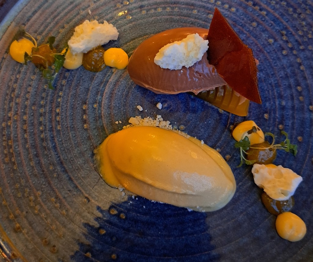 Chocolate & Passionfruit – Milk chocolate crémeux, textures of passionfruit & white chocolate aero.