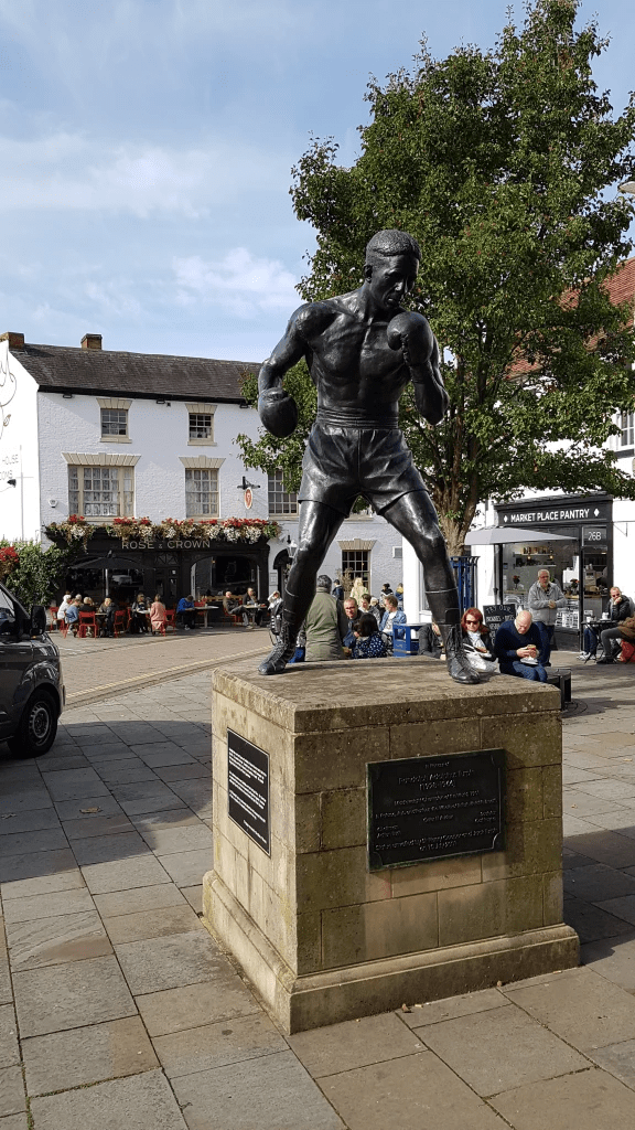 The collection has been inspired by Randolph Turpin, who went down in British boxing history for sensationally winning the World Title by beating the legendary Sugar Ray Robinson, earning himself the memorable nickname ‘The Leamington Licker’. Born in Leamington of Guyanan heritage but raised in Warwick, Turpin became a local hero overnight! There is a fine looking statue of Randolph Turpin in the Market Square, Warwick, outside The Rose & Crown pub.