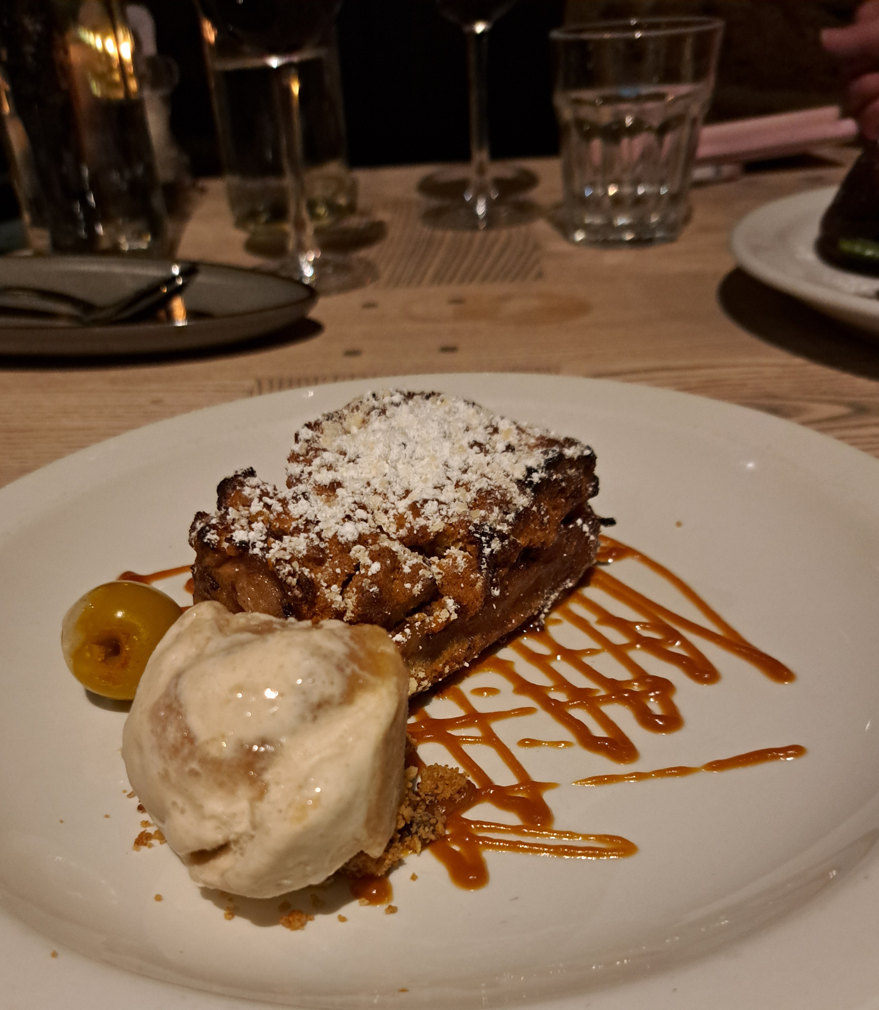 - Hot Apple & Berry Pie, Caramel Sauce & Apple Ice Cream