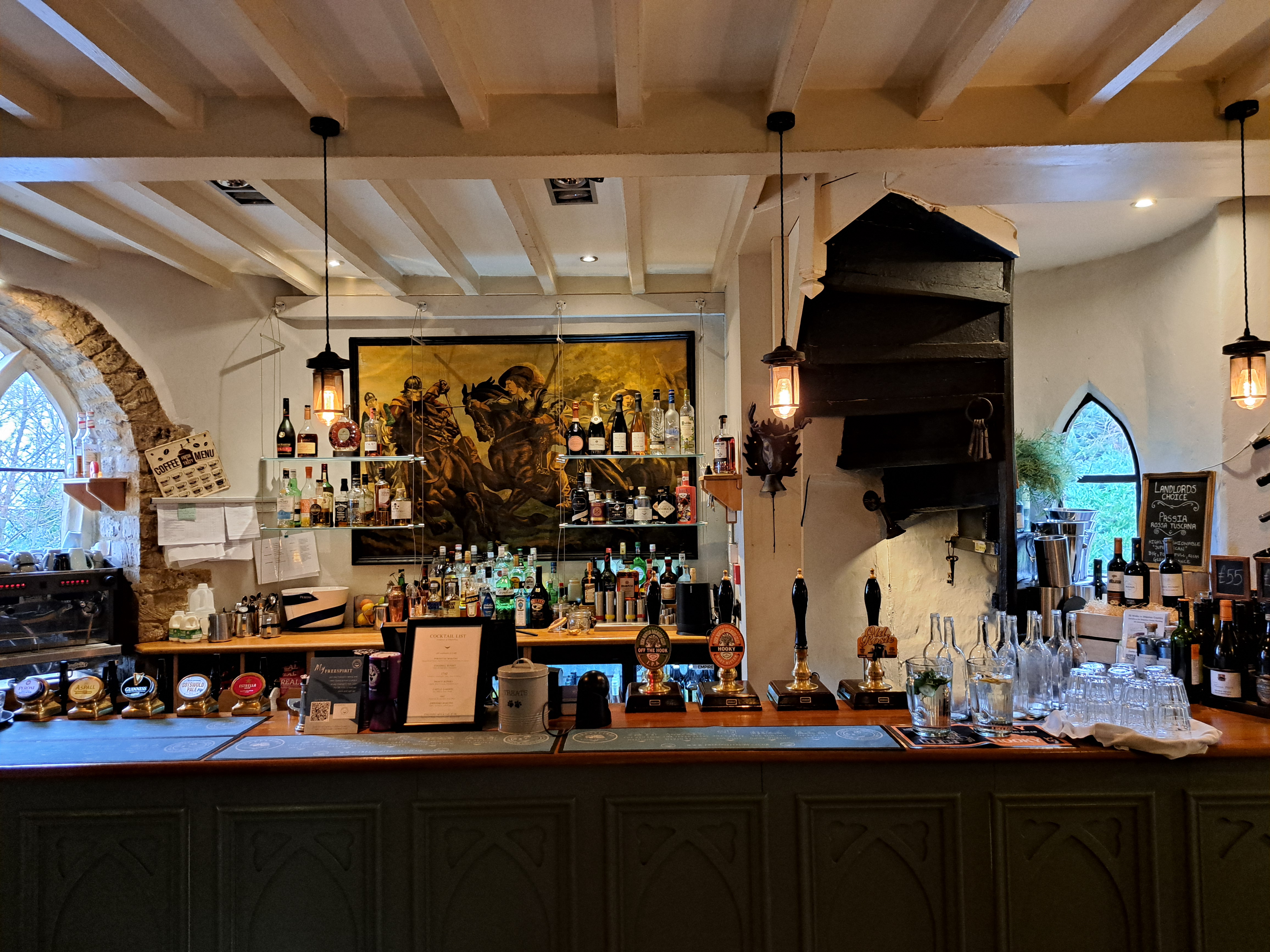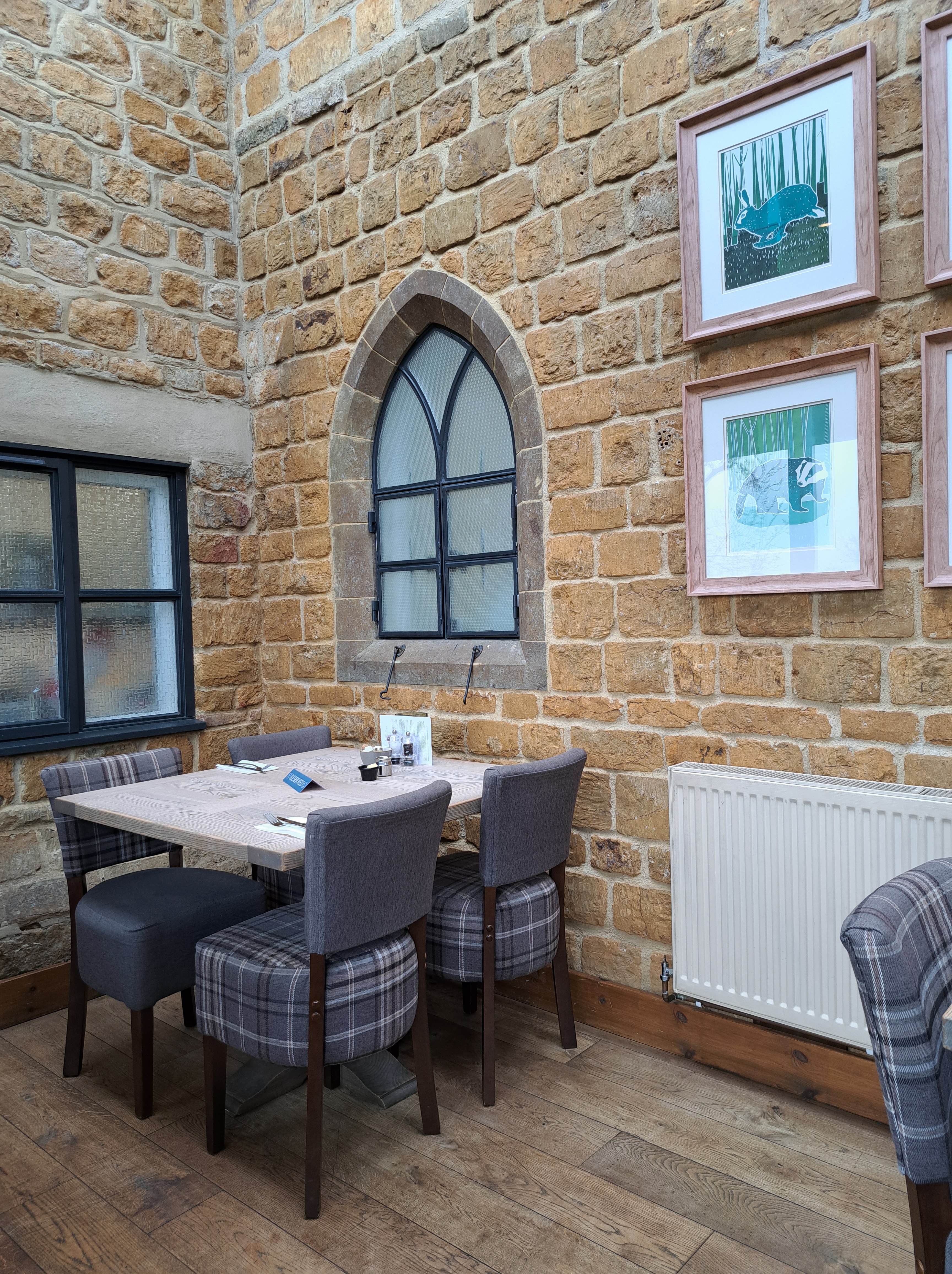 The other two dining spaces featured oak panelling, exposed stone or whitewashed walls, original timber floors, gothic-style mullioned windows, high ceilings with exposed joists & cast-iron chandeliers to highlight the quaint castle vibe, while leather chesterfields, scrubbed oak tables and comfy vintage chairs ensure relaxed, convivial spaces to drink and dine.