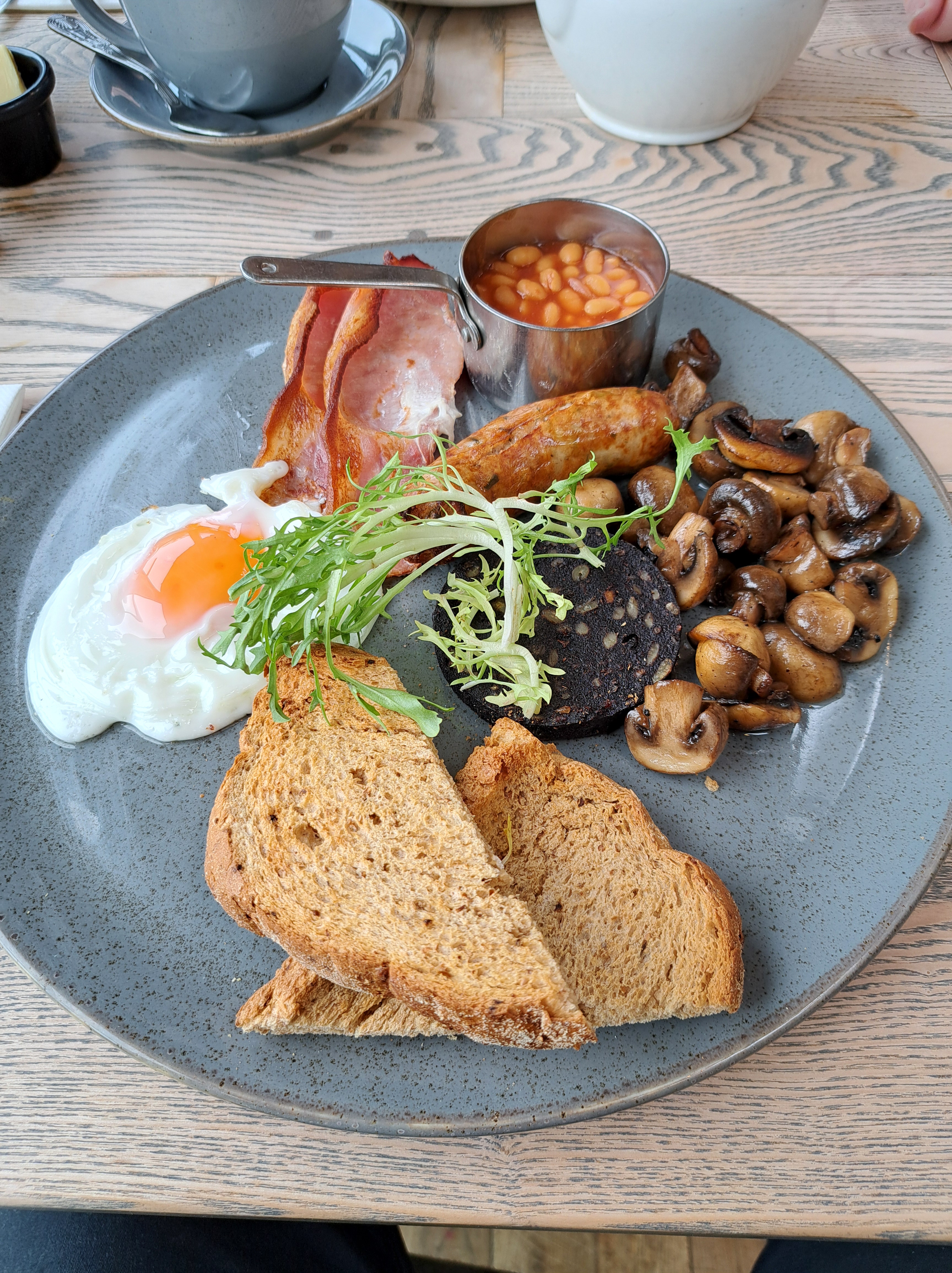 1 Full English Breakfast, Sausage, Bacon, Black Pudding, Baked Beans, Mushroom, Toast & Fried Egg