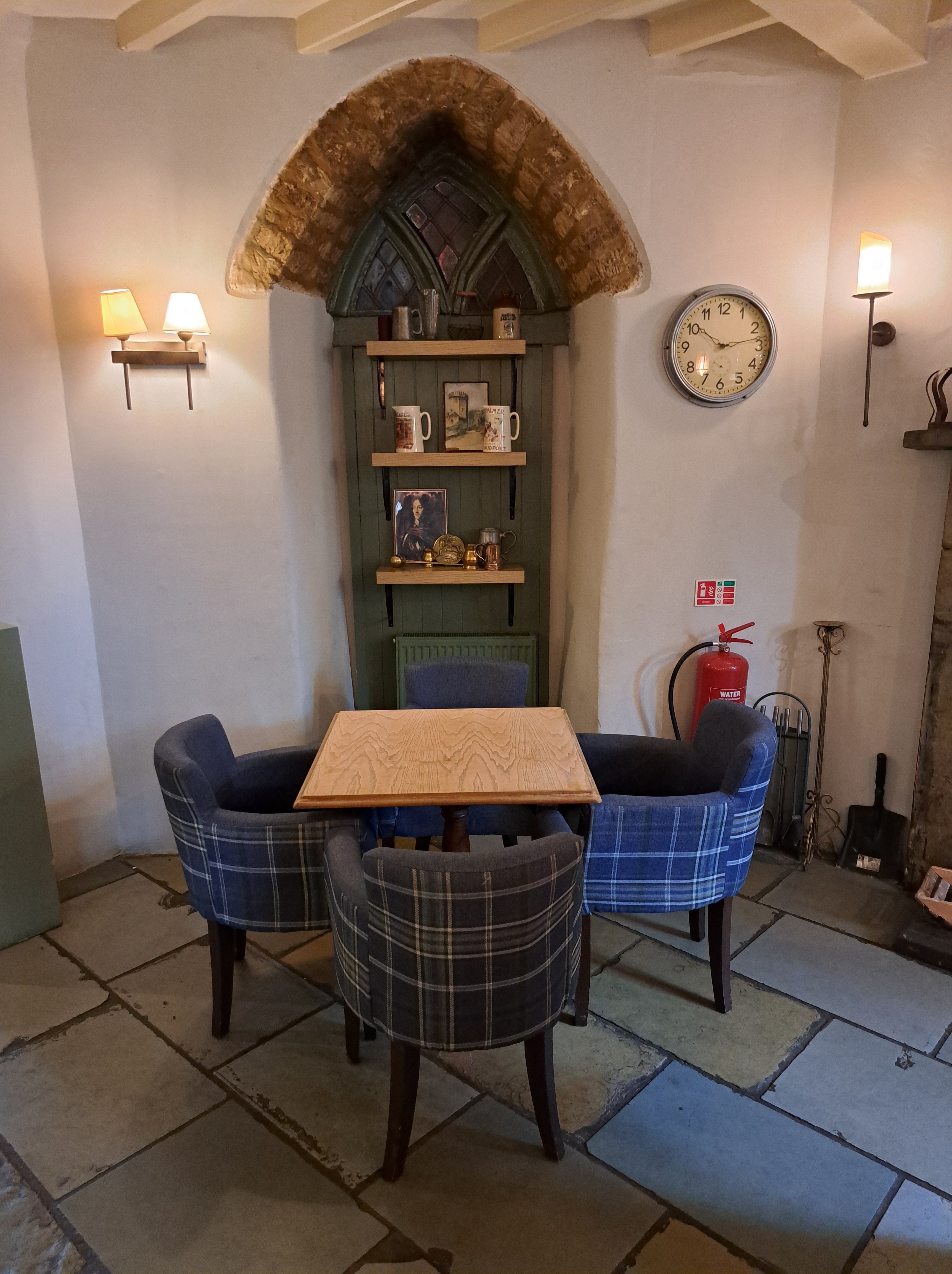 The spacious bar with its flagstone floors & crackling open fires in winter is a wonderful place to sit & eat or simply appreciate the fine range of local Hook Norton ales, guest ales plus some choice ciders! After our meal we retreated to the warm, inviting bar. I loved the small `nook` with enough space for a small table & chair. Guests can sit & peruse the extensive & well-curated wine list or even play one of the available board game selections! The well-trained & knowledgeable bar staff are always on hand to assist when choosing your drink of choice. All of the staff whether in the bar, restaurant or pub reception were very friendly, professional & welcoming.
