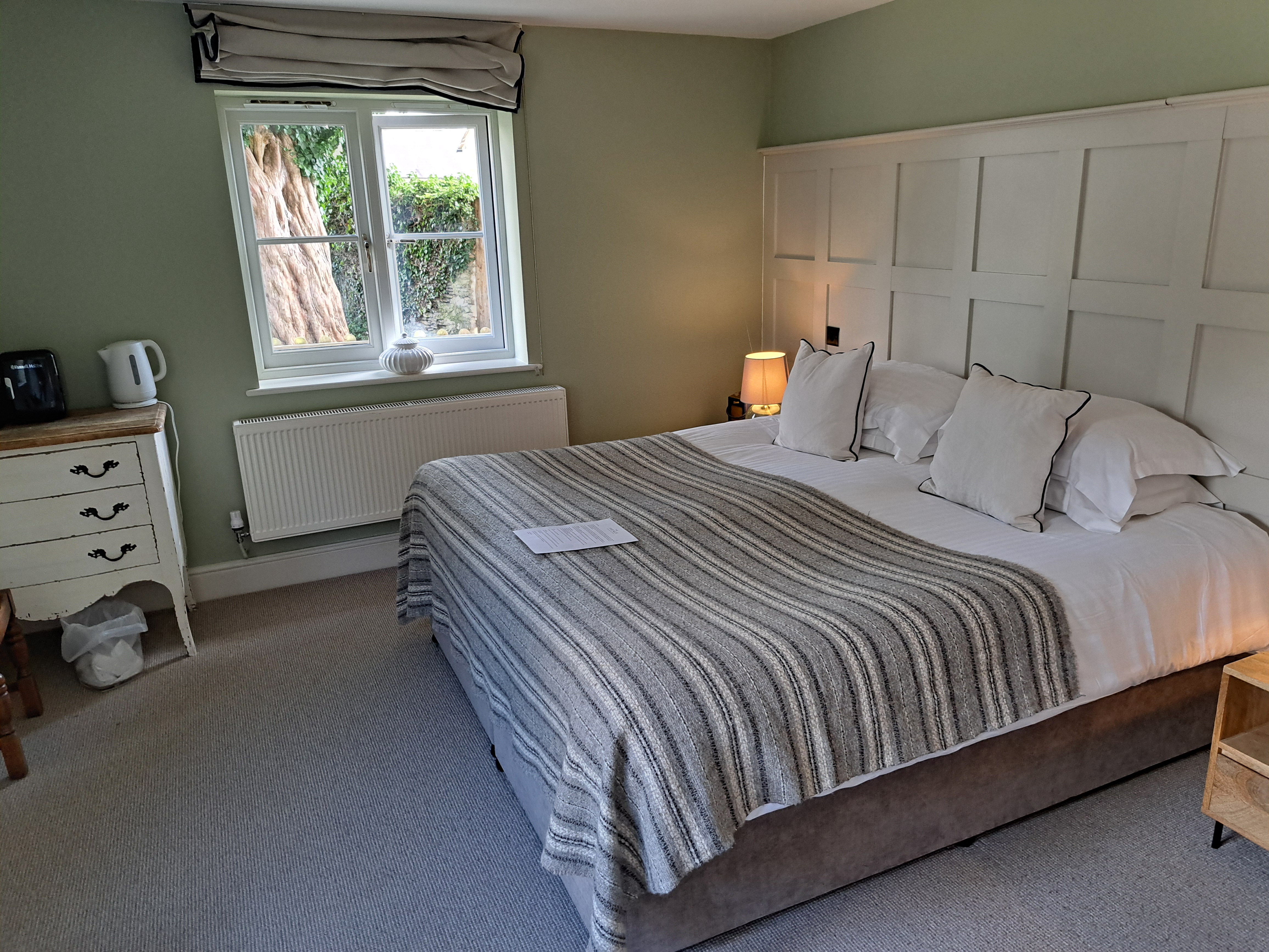 Above the pub, four en-suite rooms with two King-size and two double bedrooms with a further five, cottage-style rooms, all en-suite, with super King-size beds, at the rear of the pub garden & terrace. I was lucky enough to be staying in one of their cottage rooms. It was a beautiful room, very spacious and bright. The bathroom too was spacious with an incredible walk in shower. Our room was simply wonderful. Safe & secure car parking was available right outside our cottage room.