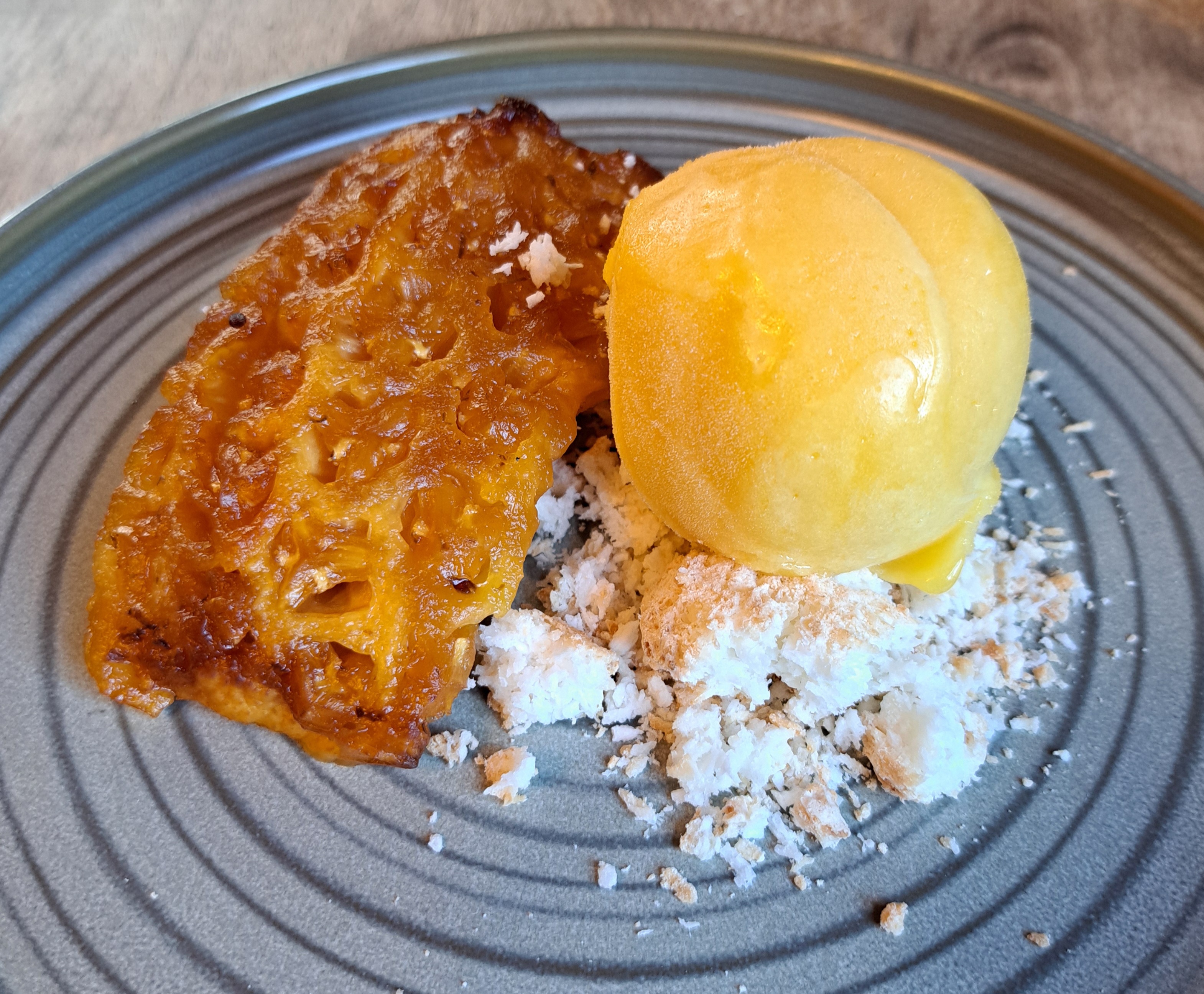 Roasted Pineapple, Mango Sorbet & Coconut Biscuit