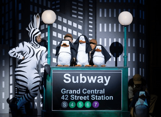 The fun-filled, fast paced production lasting just 1 hour and 40 minutes stayed true to the Dreamworks animation. For those unfamiliar with the much-loved story, it follows Alex the lion (charismatic King of the zoo) along with his adventurous friends Marty the zebra, Melman the giraffe, and Gloria the hippo. Their lives of blissful captivity in New York’s Central Park Zoo are turned upside down when Marty’s curiosity leads to a daring escape, leading them to an unexpected journey of self-discovery and friendship.