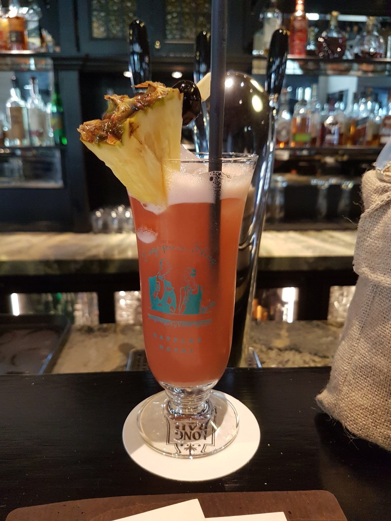 The Singapore Sling is a gin cocktail which also includes pineapple, grenadine, lime juice, benedictine and for the “pretty pink hue” cherry brandy and Cointreau. Simply delicious!