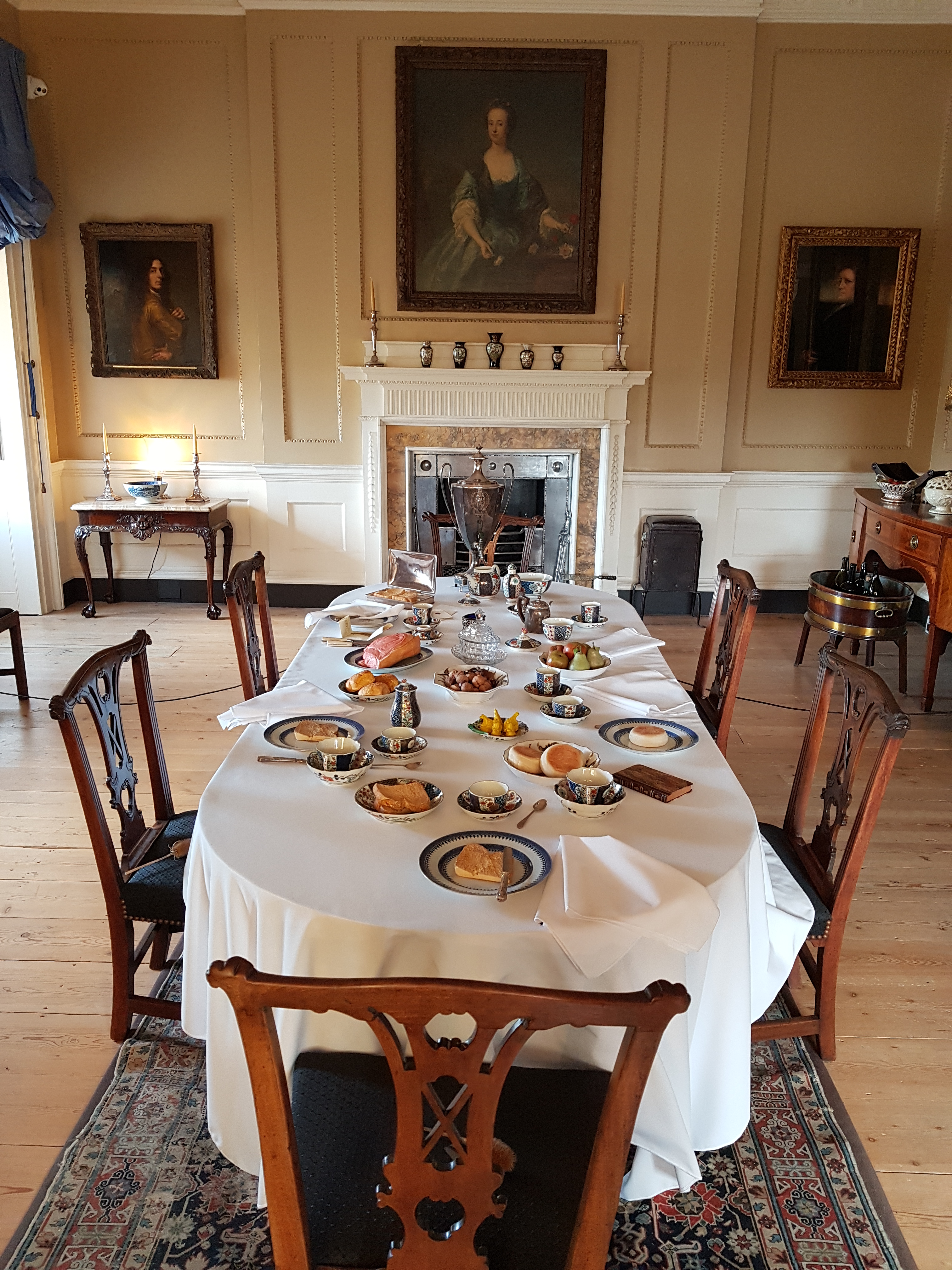 I started my self-guided tour in the dining room laid out with a sumptuous meal. Video display screens in many of the rooms provided text & oral commentary of the features to be seen in the room and further information about Jane Austen’s associations with the house. Strategically placed teasels warned visitors not to sit on any of the chairs in the rooms. In the parlour I noticed a reference on a painting to the `Dicky Dongle Dance` but could find no other information about this dance on the internet!