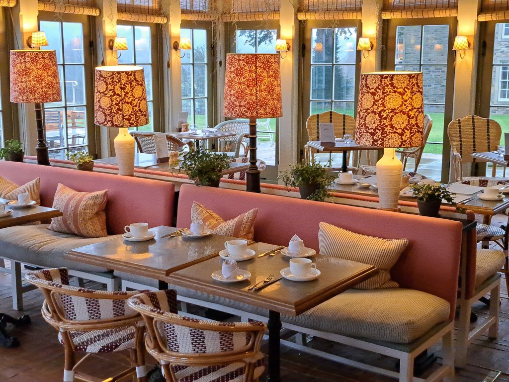 The Garden Room Restaurant, inspired by the glasshouses at Chatsworth, is a brightly lit dining space, with light streaming in through the large glass patio windows. The restaurant is decorated with lots of specimen plants from the estates greenhouse and looks out across the spacious terrace with stunning views of the open fields and gardens of the estate.