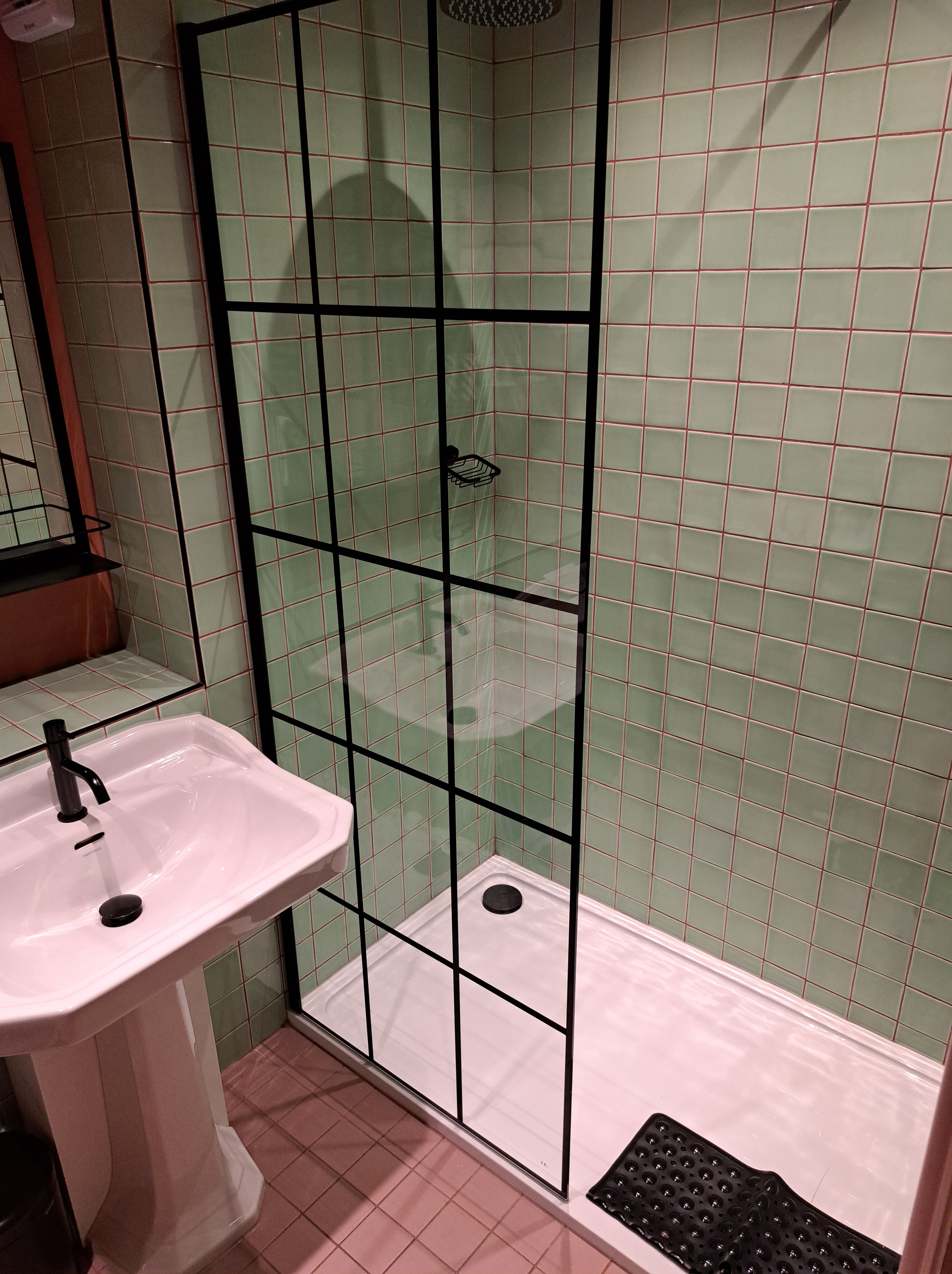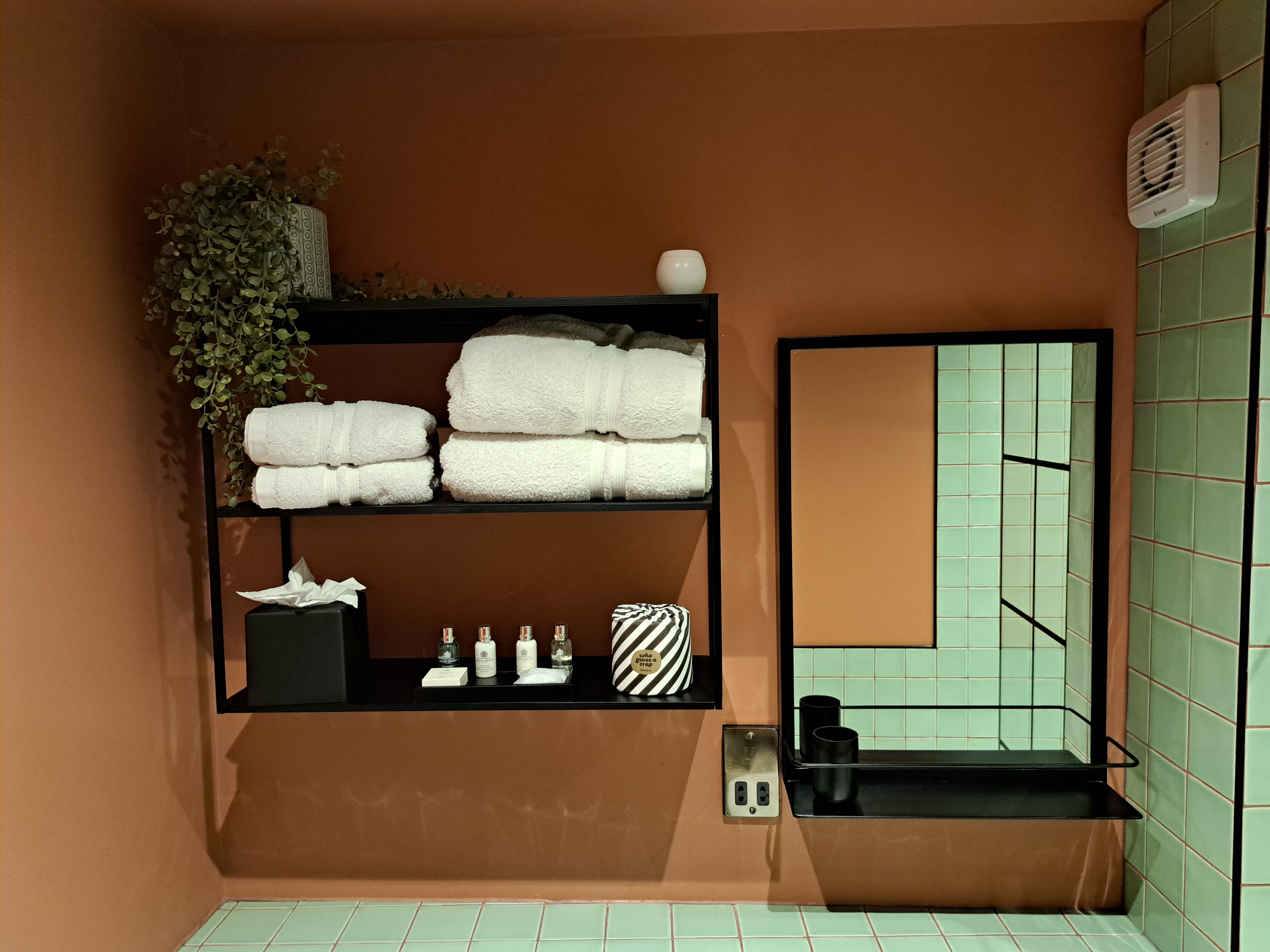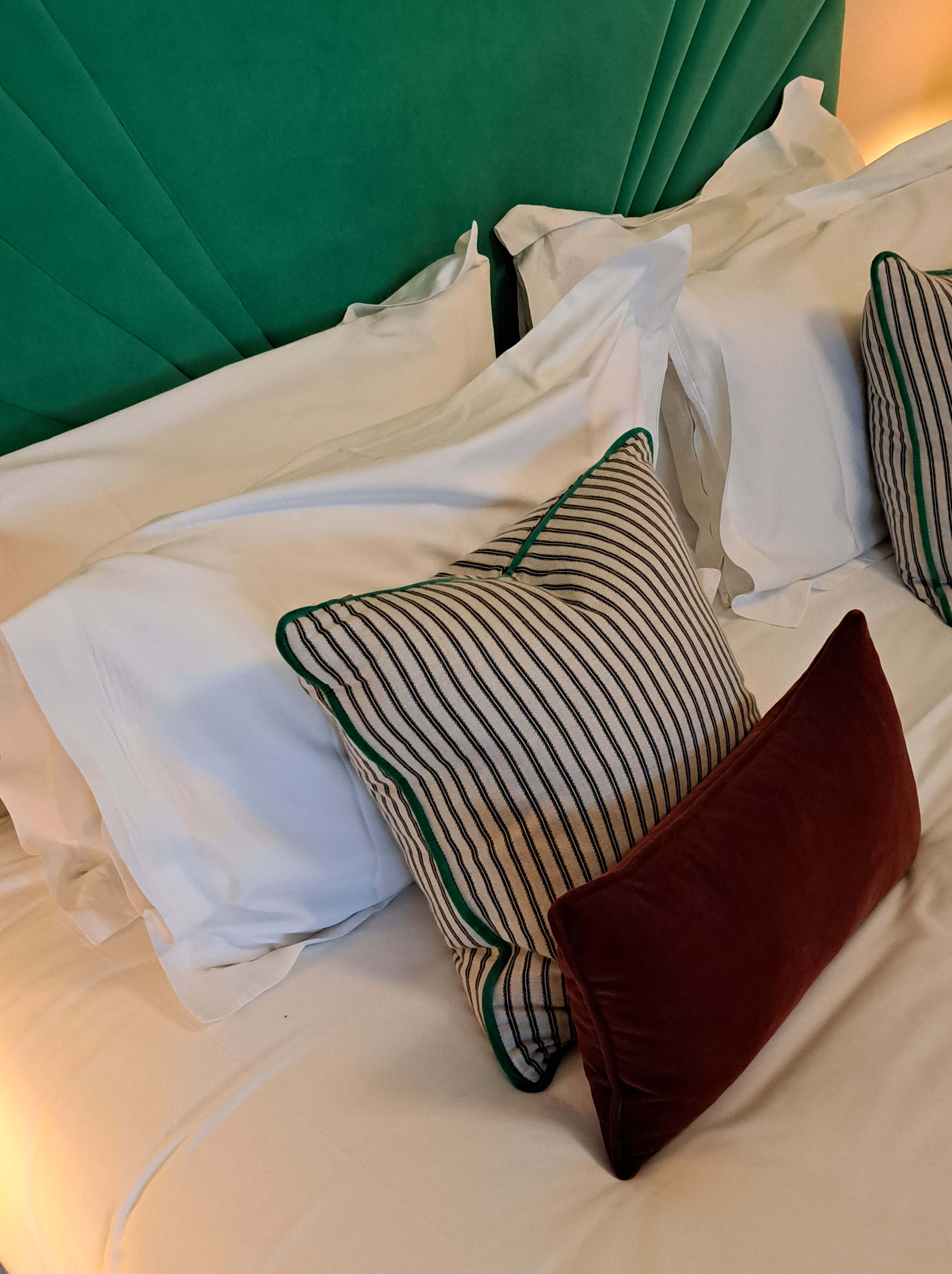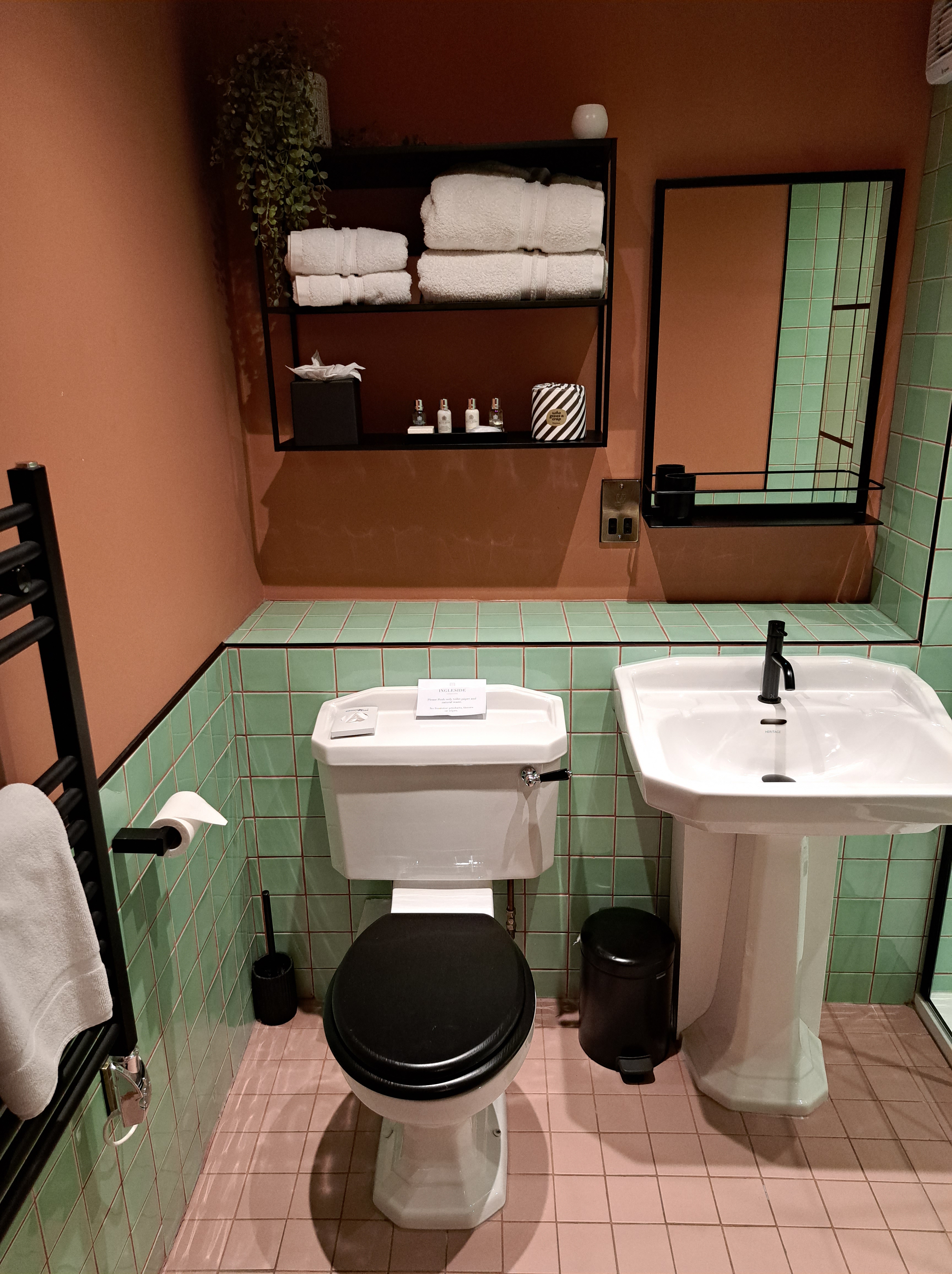 My Super King bed, cloaked with a fashionable collection of pillows & cushions, was enormous & extremely comfortable yet there was still plenty of space within the room. The colour scheme in my room was bold & courageous with bands of bright greens & subtle pinks sitting comfortably alongside each other.