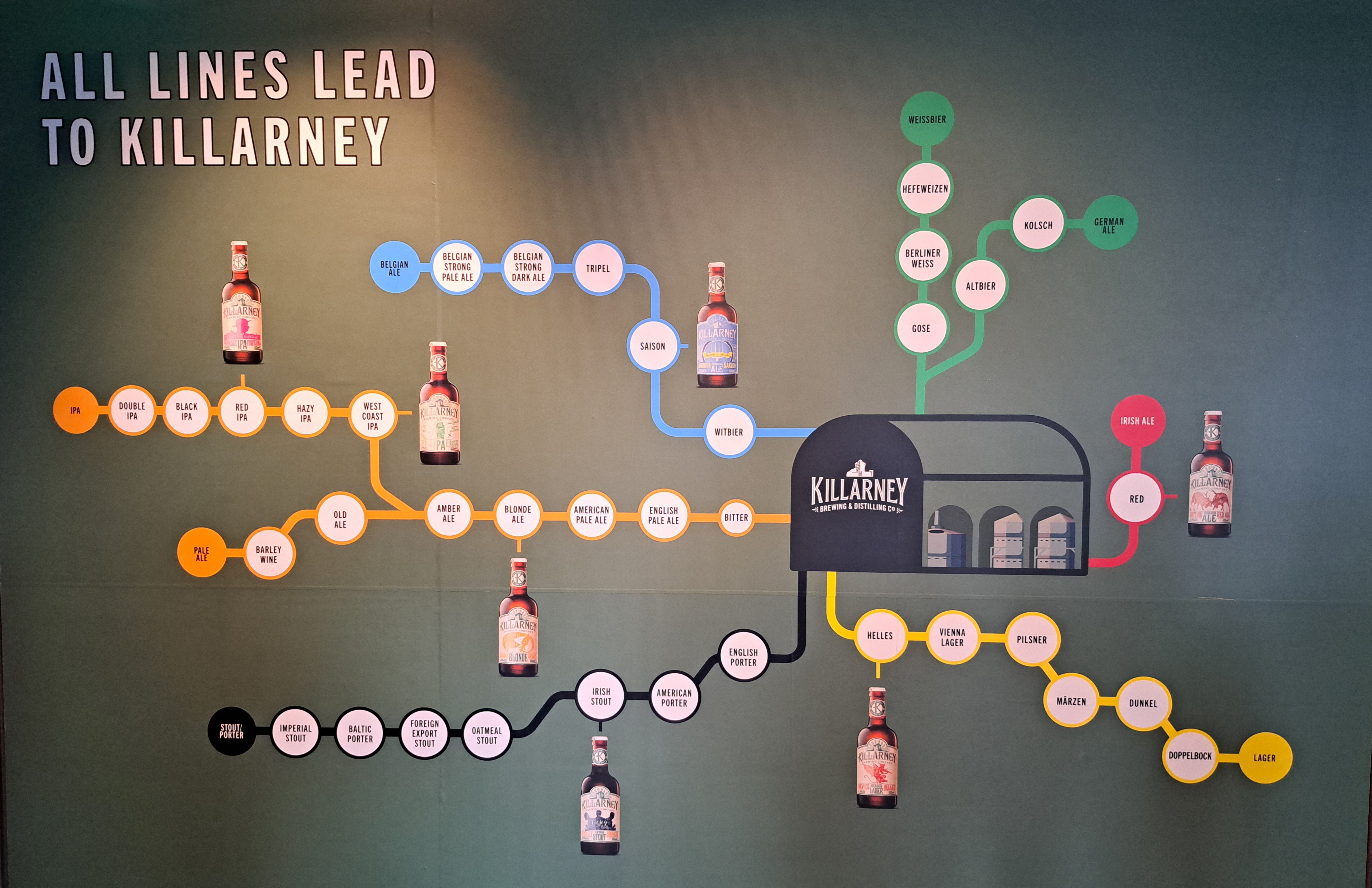 I recently visited the Killarney Brewing & Distilling Co. Bar & Restaurant on the Ring of Kerry. The Killarney Brewing and Distilling Company have been producing great tasting quality beers since 2015 at their original micro-brewery & taproom in Muckross Road, Killarney. In 2022 they moved to their new location, a spectacular collection of modern architectural buildings, on the scenic Ring of Kerry, offering space and panoramic views across to the MacGillycuddy Reeks & Lakes of Killarney, just a short drive out of Killarney.