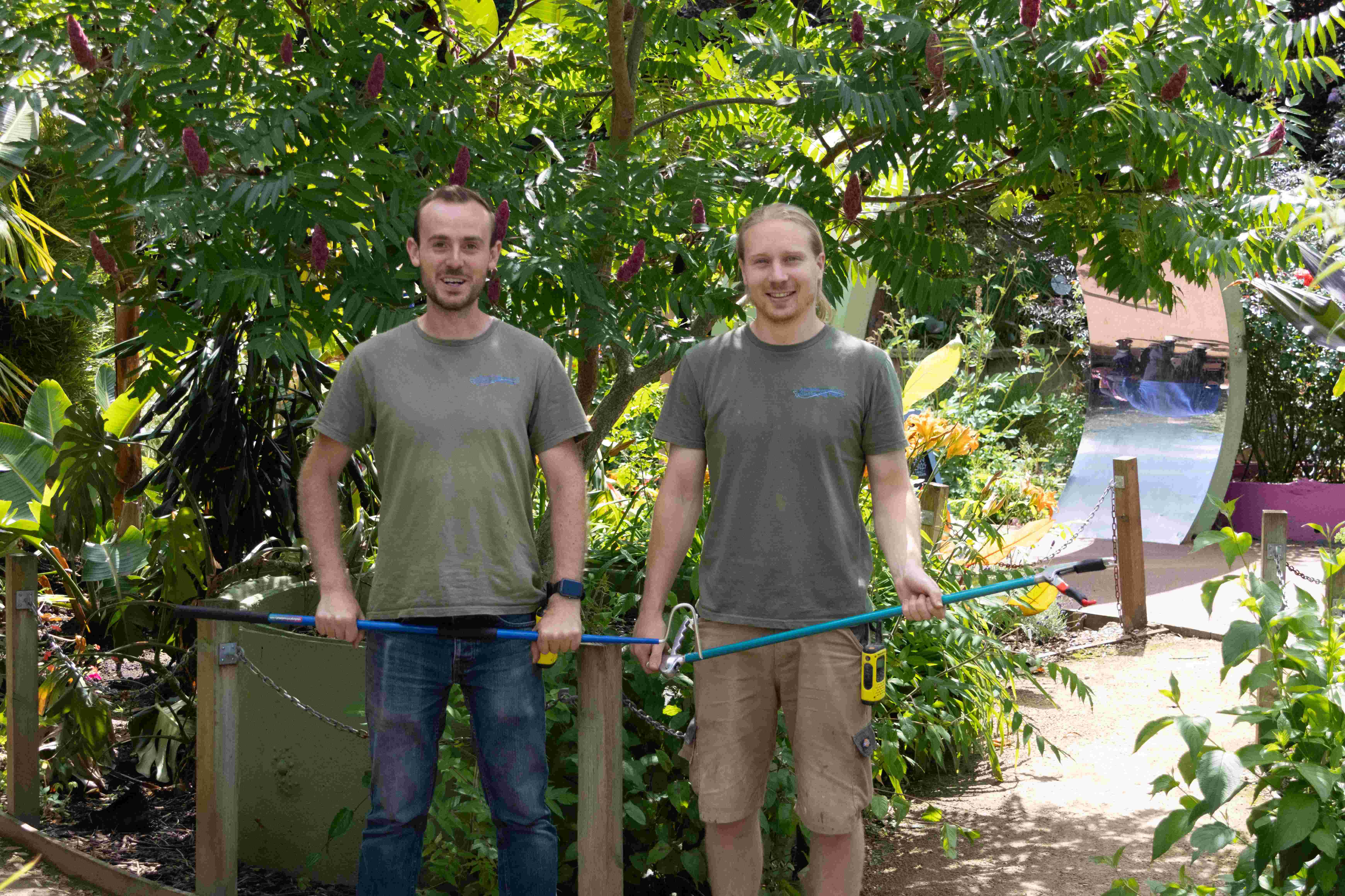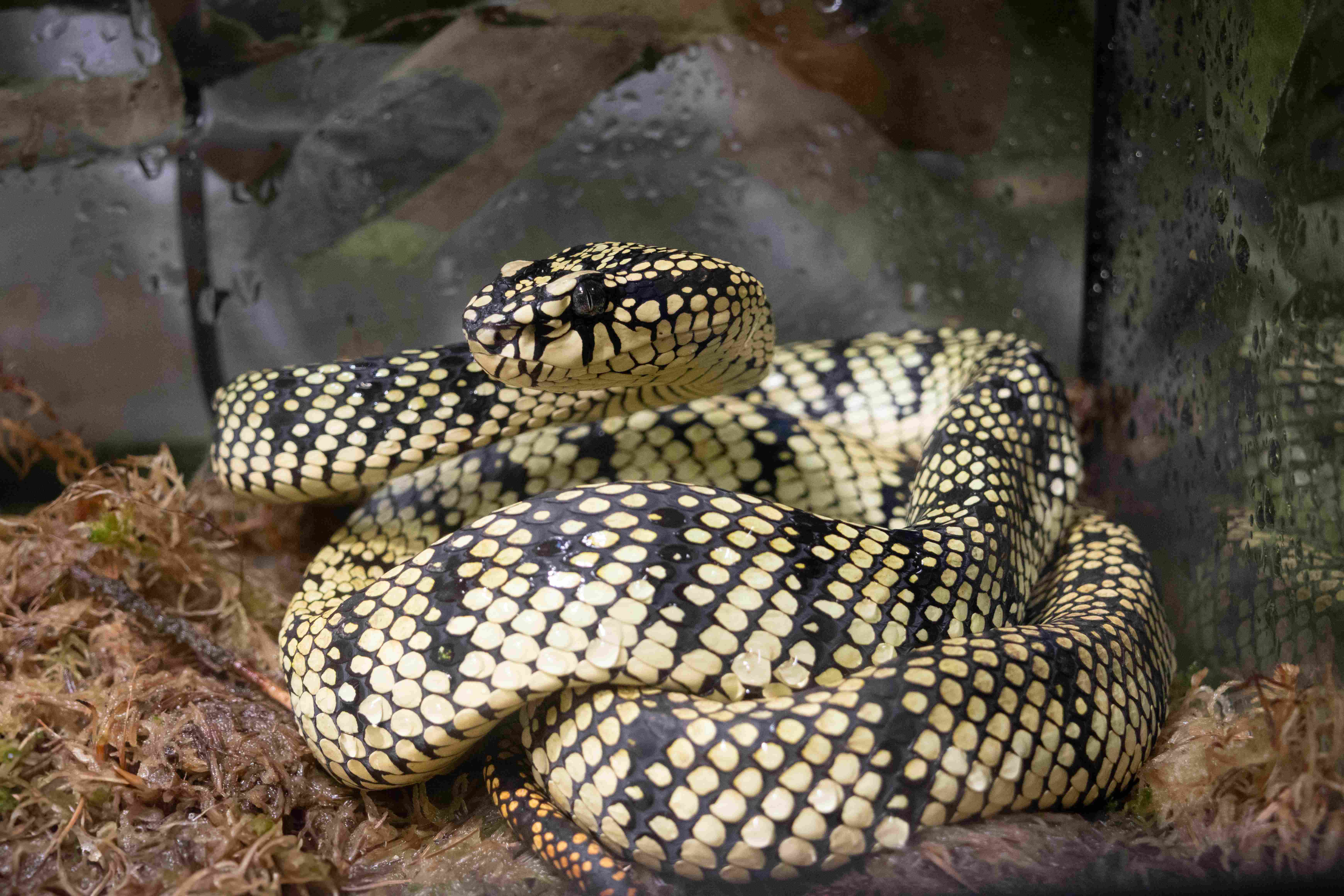 An exciting new exhibition within Rainforest Realm to house a pair of ‘Sumatran Pit Vipers’ will be launched on Friday 18 July. Butterfly Farm Education Officer, John Withers, and members of the Education Team have designed, and rock themed this bespoke new exhibition.The Sumatran pit viper or Trimeresurus sumatranus, is a venomous snake native to the rainforests of Sumatra and surrounding Southeast Asian regions. They have a striking yellow or green body; the ones at the Butterfly Farm are yellow, with black markings, and a broad, triangular head that helps distinguish it from non-venomous species. This viper is arboreal, spending much of its time in trees or shrubs, where it ambushes prey such as birds, frogs, and small mammals. Like other pit vipers, it has heat-sensing pits between its eyes and nostrils that help detect warm-blooded prey. Its venom is hemotoxic, capable of causing significant tissue damage, and although not typically fatal to humans, bites require urgent medical attention. The vipers will be on display from Saturday 19 July and will be looked after by specialist handlers Coogan Middlebrook and John Withers.