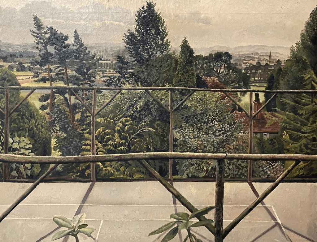 A talented painter in her own right, Hilda had worked as a Land Girl in Wangford during the First World War. In 1924 Spencer, Hilda and other members of her family stayed there for a painting holiday. The opening section of the show reflects their visit, with several portraits made around this time, including Gathering on the Terrace (1924) by Richard Carline (1896-1980), depicting the various members of the group.