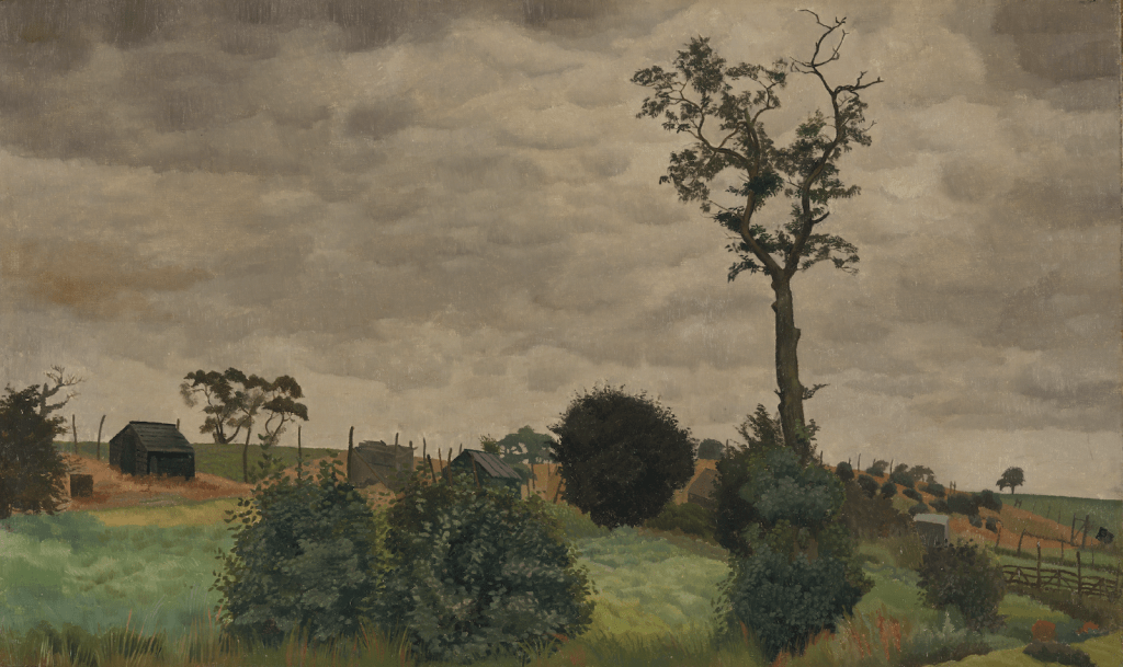 A year later, Stanley and Hilda returned to Wangford to be married, and they visited again in 1926. For a man whose art was deeply informed by memories of people and places, it was their time in Suffolk that laid down happy associations for him, and paintings such as Trees and Chicken Coops (1925-26) and The Red House, Wangford (1926) reveal his connection with the life and landscape of the area.