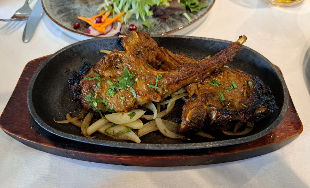 Tandoori Special: Tandoori Lamb Chop. Marinated in ginger, garlic, spicy chilli, olive oil & served with the special Naan Bread. A couple of lightly spiced, incredibly tender lamb chops sitting on some sweetly fried onions.
