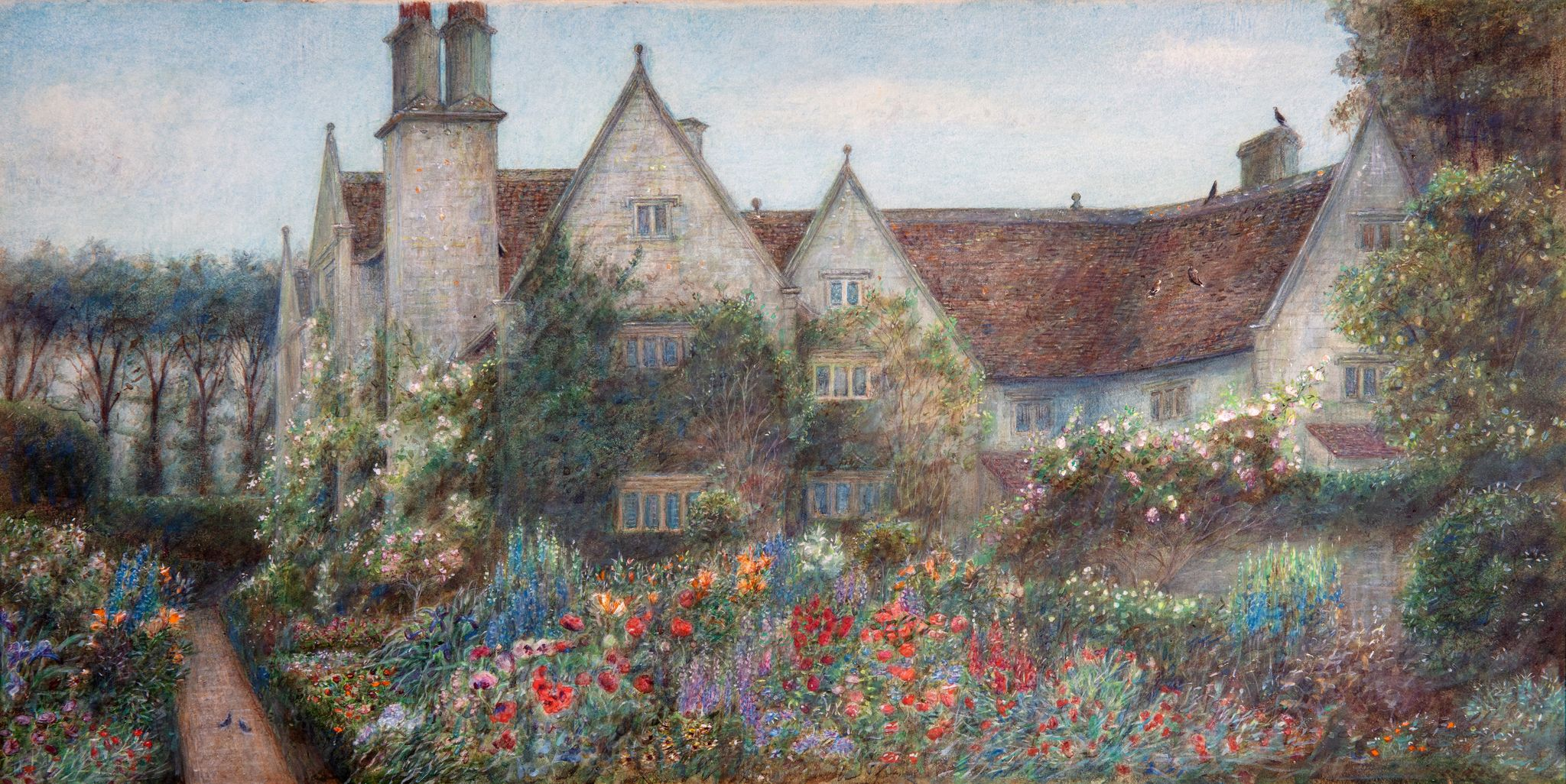 The Garden at Kelmscott Manor by Marie Stillman, 1905, watercolour © Society of Antiquaries of London (Kelmscott Manor)