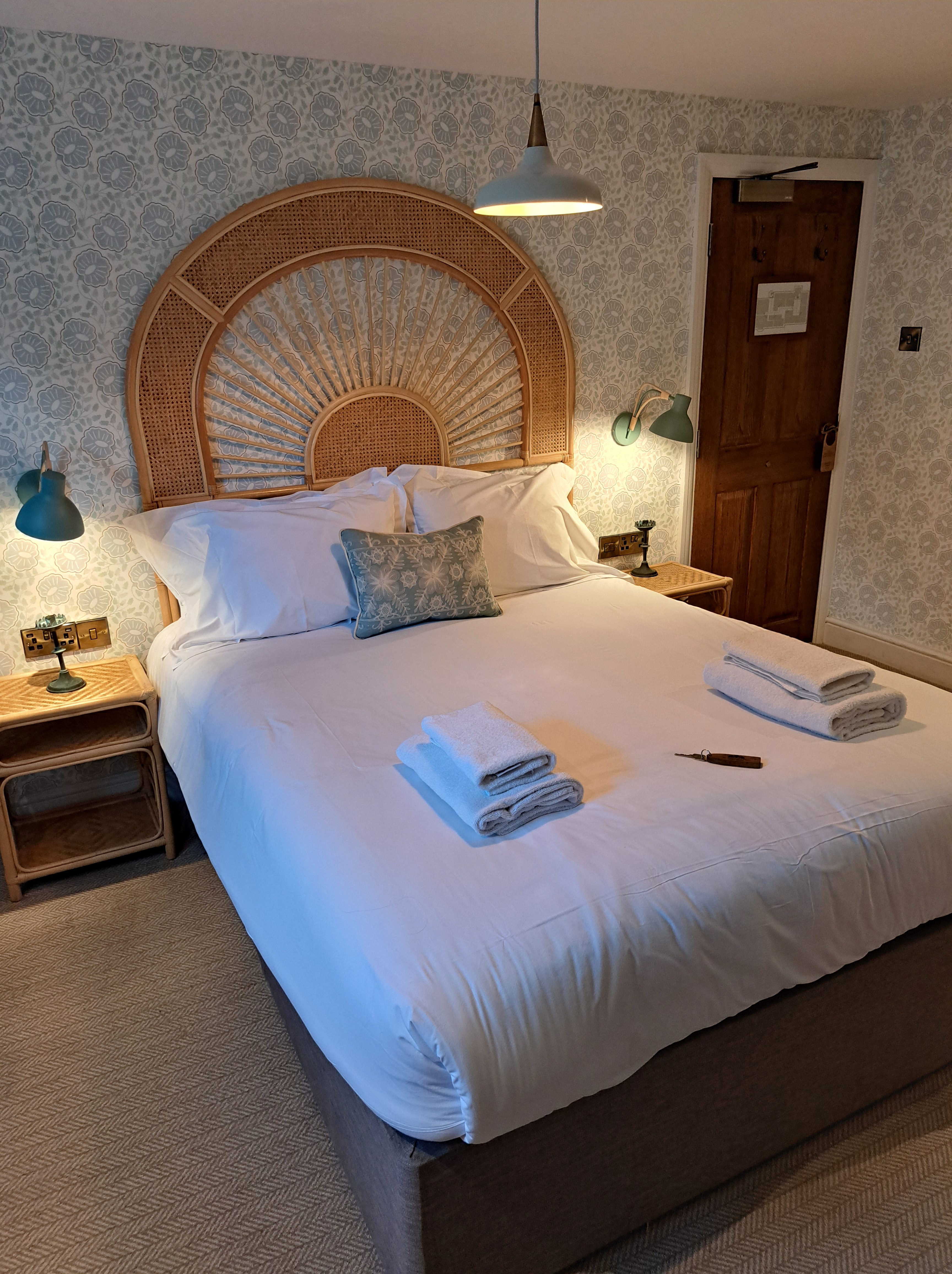 All of the eleven en-suite rooms have very comfortable beds, soft linen, tea and coffee-making facilities, stylish bathrooms, a range of exclusive toiletries, flat-screen TV with Freeview and and there is free WiFi throughout. The pub has made it a policy to remove all plastic bottles and replace them with a refillable and more eco-friendly aluminium bottle in the bathrooms. Our room also included a stunning statement headboard and beautiful wallpaper, which helped create a calming elegance to the room.