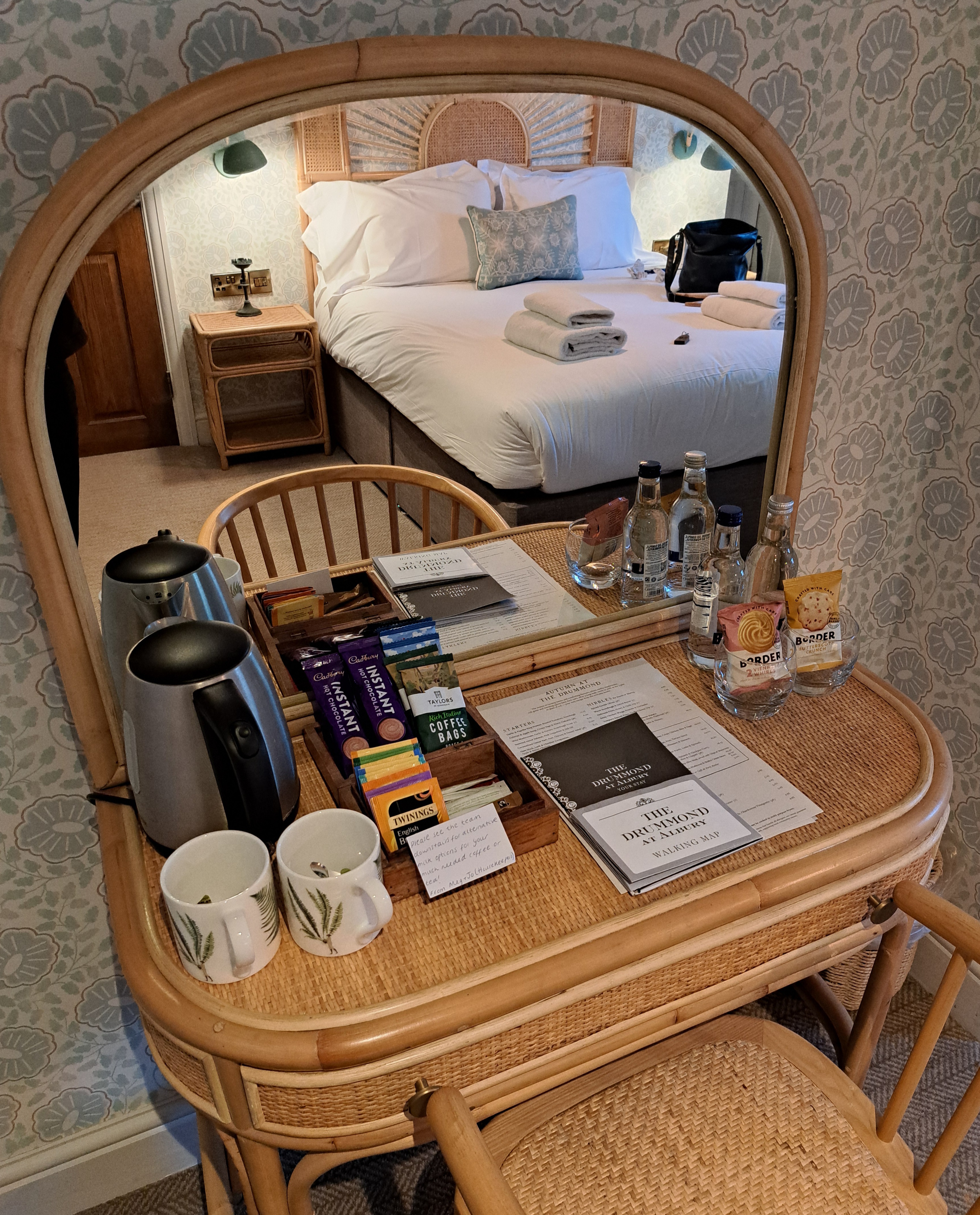The accommodation at The Drummond consists of 11 en- suite rooms, four of which I was told, are in a separate annexe or cottage, including a family room, which is wheelchair accessible. There is a ramp & steps from the parking lot at the back of the pub, for easy access and there is a disabled toilet and baby change nearby. I know that dogs are welcome in the bar, but not in the restaurant area.