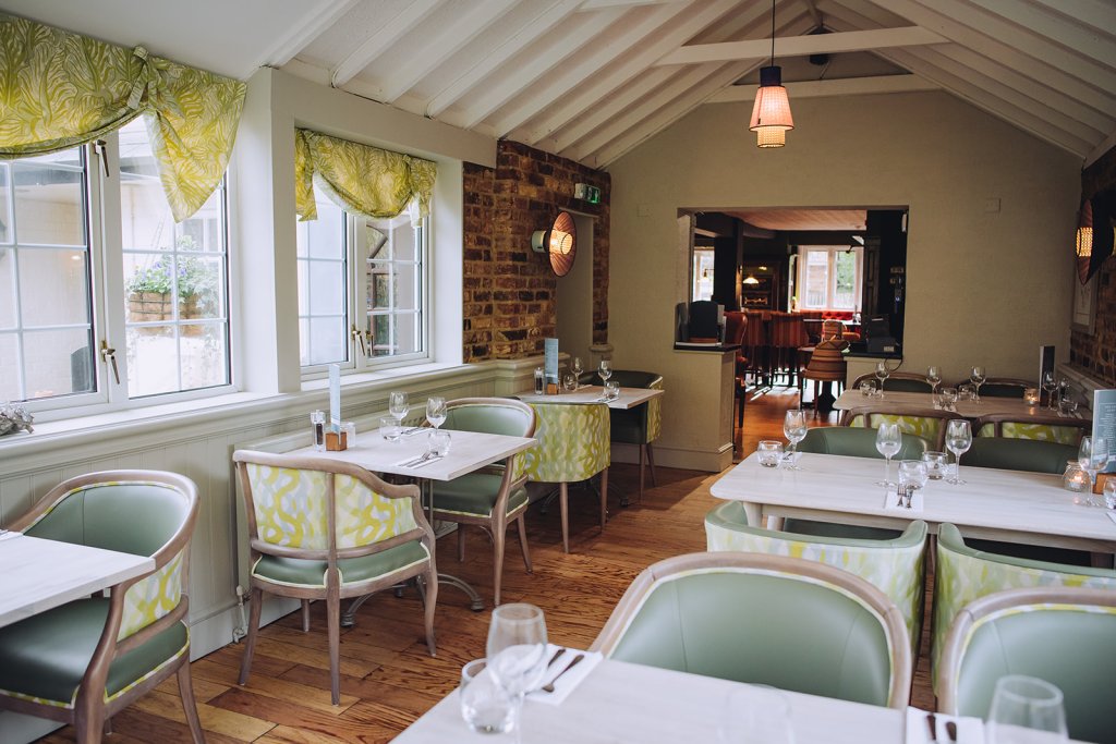 The dining area was very elegant with stylish upholstered chairs, displaying a pattern of bold, large-scale horizontal stripes. The texture, pattern & earthy colours of the seating created a character & contemporary edge to the pub’s relaxed, welcoming atmosphere. There were what looked like, small woodcut prints of birds, places around the restaurant walls, on a leaf motif, patterned wallpaper.