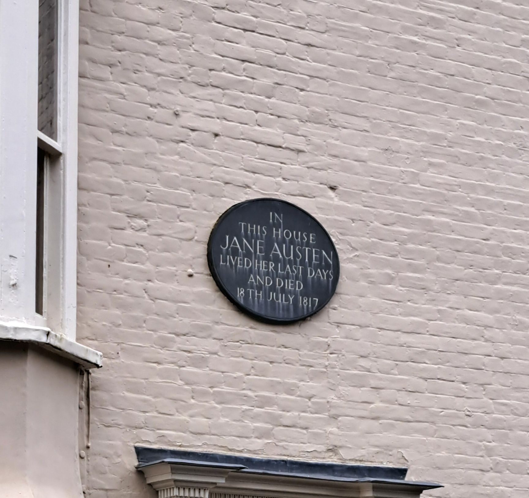 Jane had spent the last few weeks of her life in the City of Winchester, after struggling with the illness, for over a year, moving with her sister Cassandra to lodgings at 8 College Street, marked today with a Blue Plague, next to appropriately, one of the oldest bookshops in the country. It is said that Jane Austen died at 4.00am on Friday 18th July 1817, with her head resting on her sister’s knee. The house is now a private residence, linked to Winchester College.
