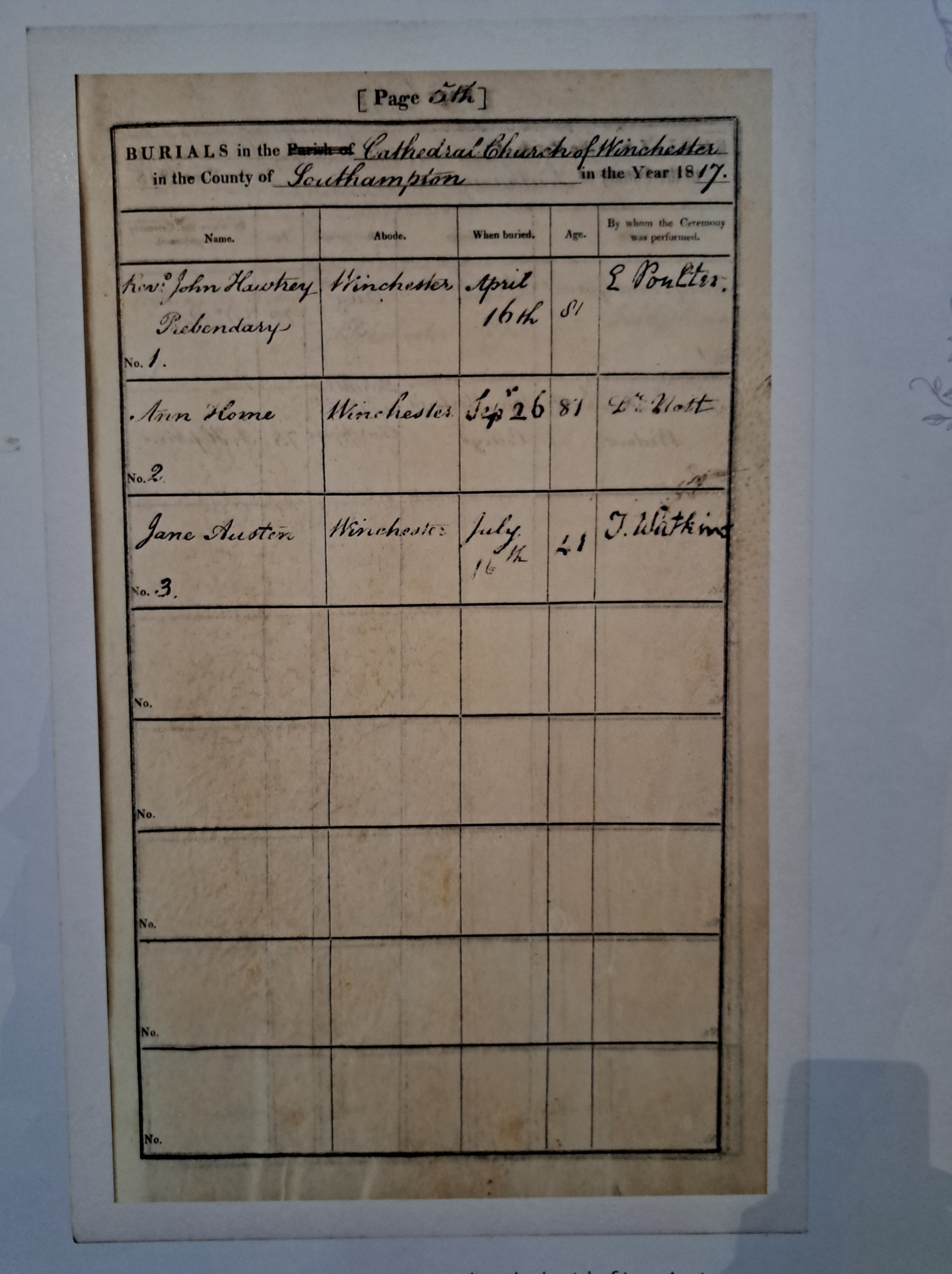 Winchester: On May 24th, 1817, Jane and Cassandra drove the 16 miles from Chawton to Winchester to be closer to the doctor who would treat her unknown illness, now thought to have been Addisons Disease. We decided to head for Winchester too!