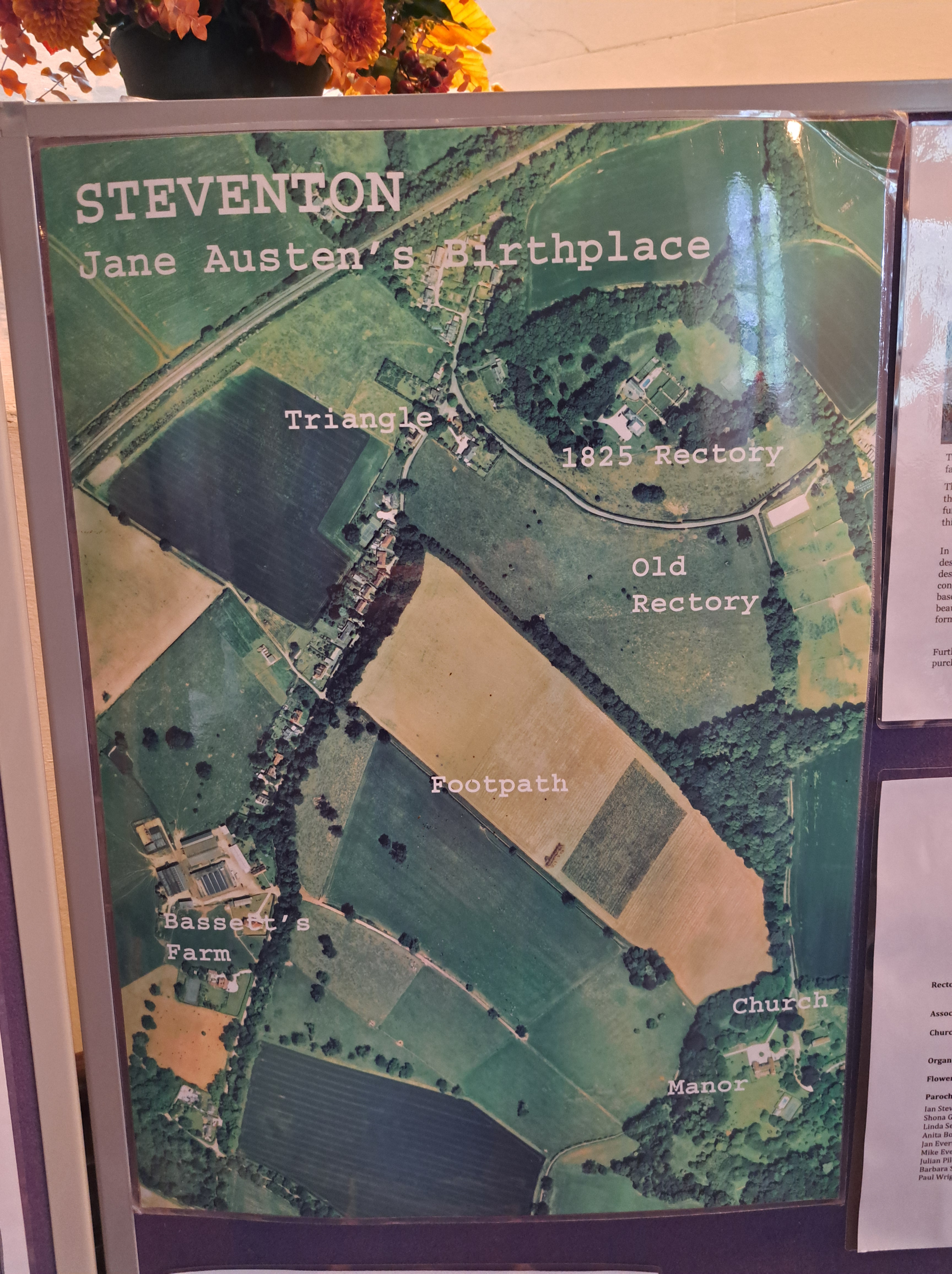 Steventon: We started our visit to Austen`s Hampshire in the north of the county, at St Nicholas Church, Steventon. The church is about a mile outside of the village, with a grand manor house next door and green rolling hills.