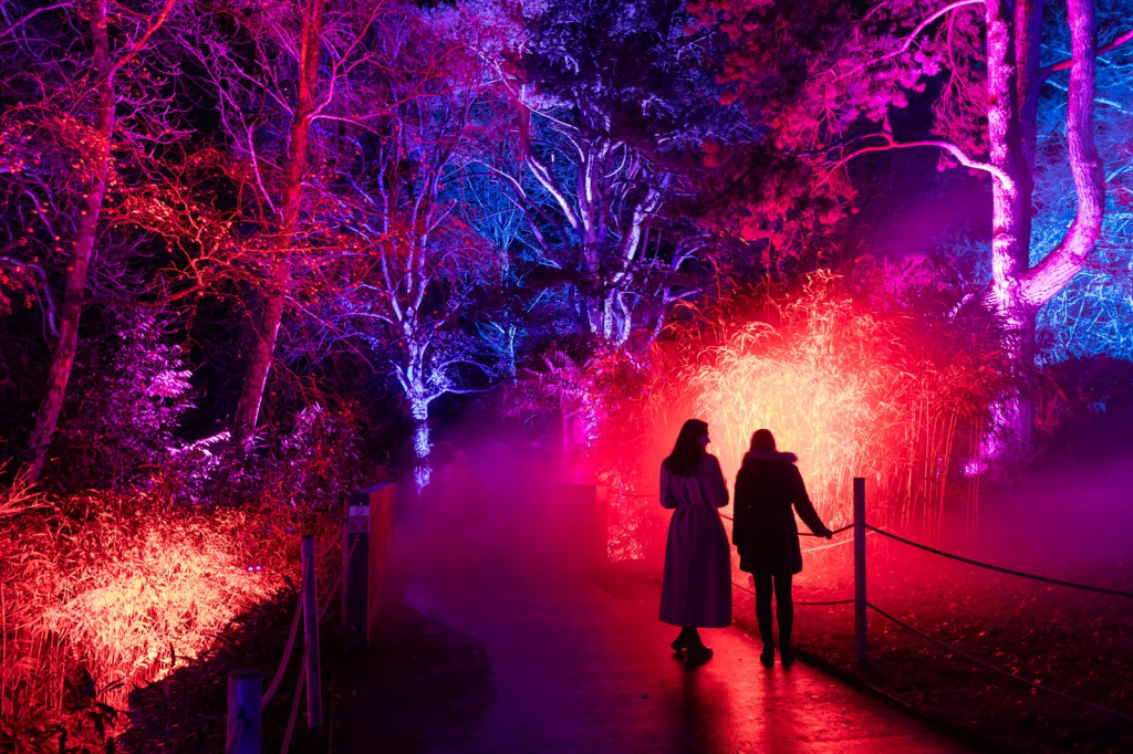 Winding through the colour-drenched woodland outside, you’ll discover a mesmerising light trail featuring new installations alongside seasonal favourites. Highlights include a tunnel of lights, a series of interactive installations powered by sound and movement and, back by popular demand, the spectacular shooting star, which was a hit with visitors in 2023.