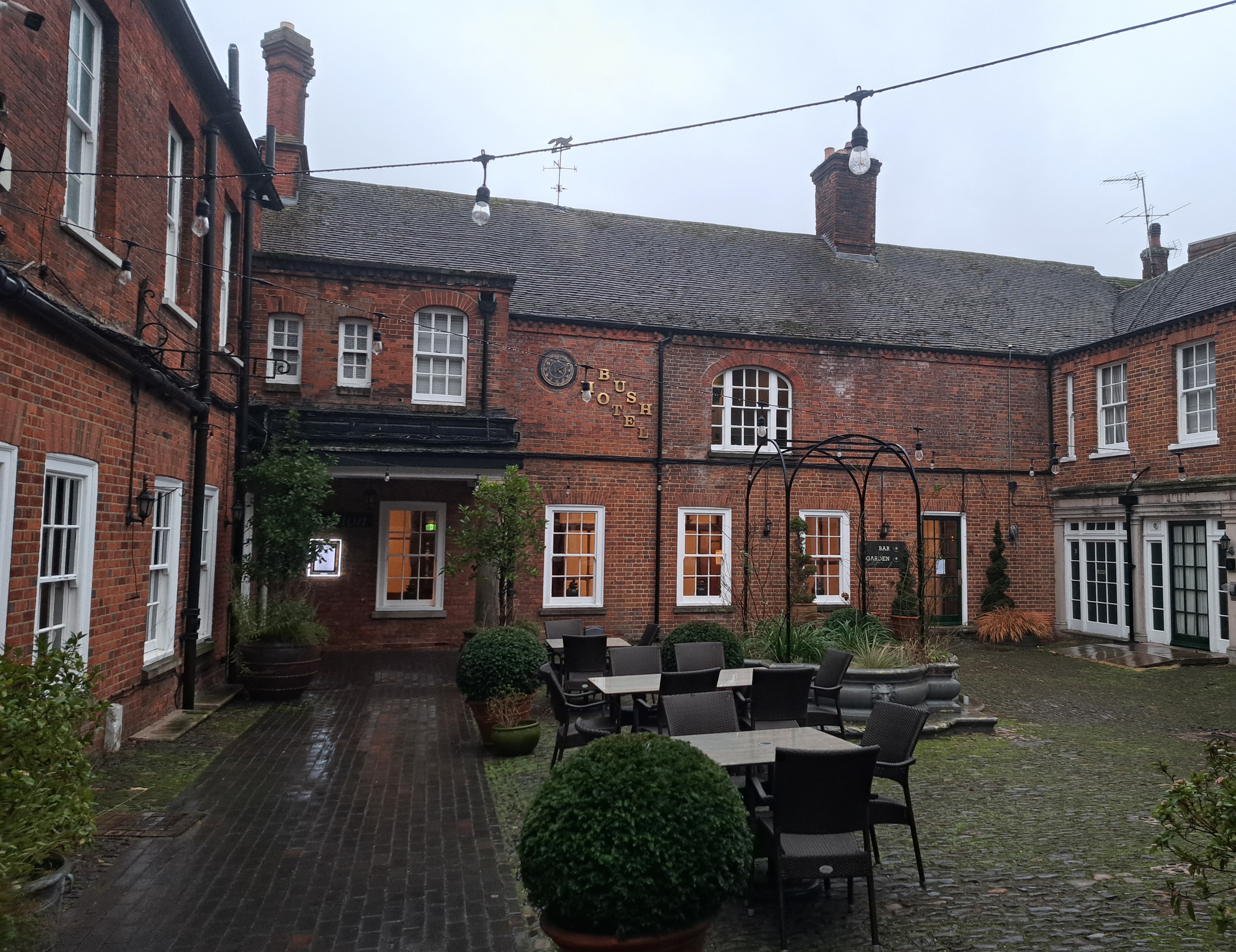 I would not hesitate to recommend The Bush Hotel if you are planning to visit Farnham and/or the Surrey Hills. Why not stop and experience their superb food and hospitality. The overall Bush Hotel experience was extremely enjoyable and satisfying. All of the staff whether on reception, serving at table in the Garden Restaurant or classic Bar presented a smart, professional, and efficient service. The Bush offers excellent overnight accommodation options, superb restaurant meals and excellent table service in a glorious town centre location.