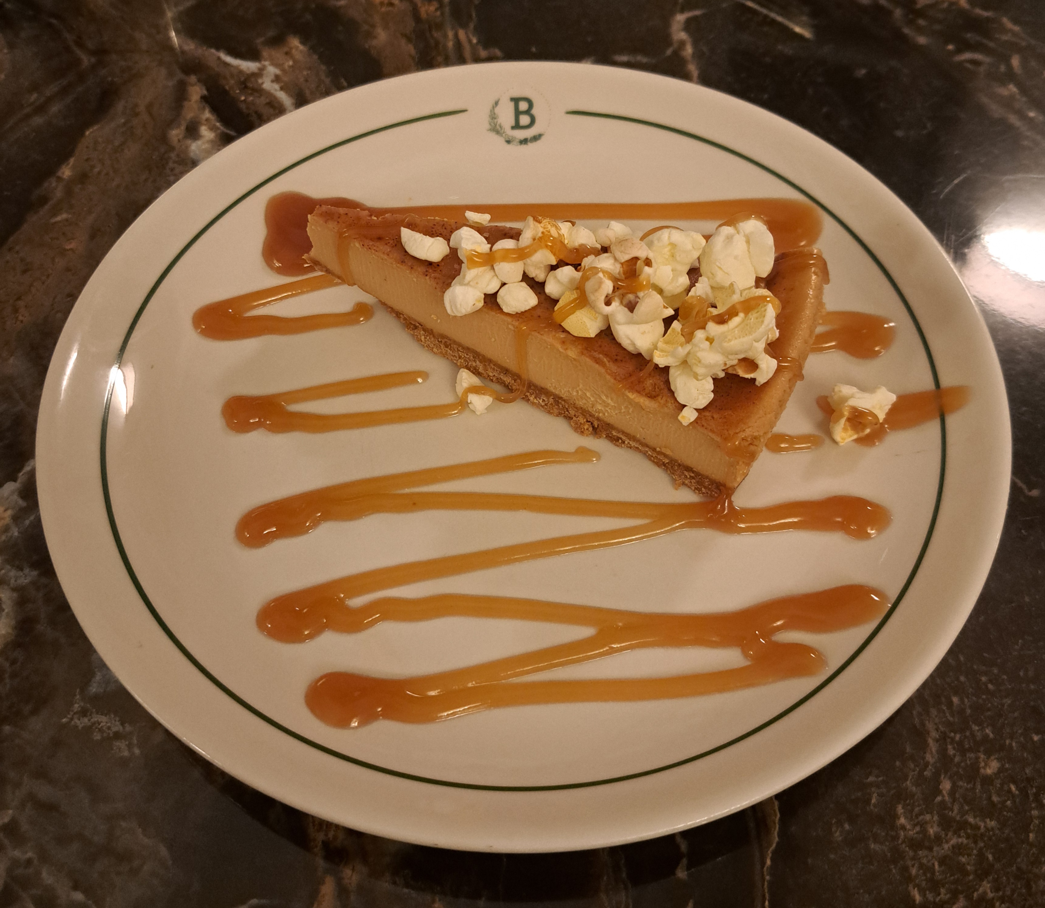Salted caramel cheesecake & rich toffee sauce – topped with popcorn
