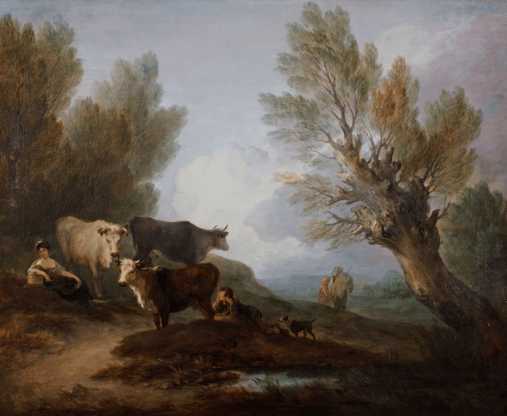 Thomas Gainsborough, Landscape with Cattle, a Young Man Courting a Milkmaid, early 1770s. Private Collection